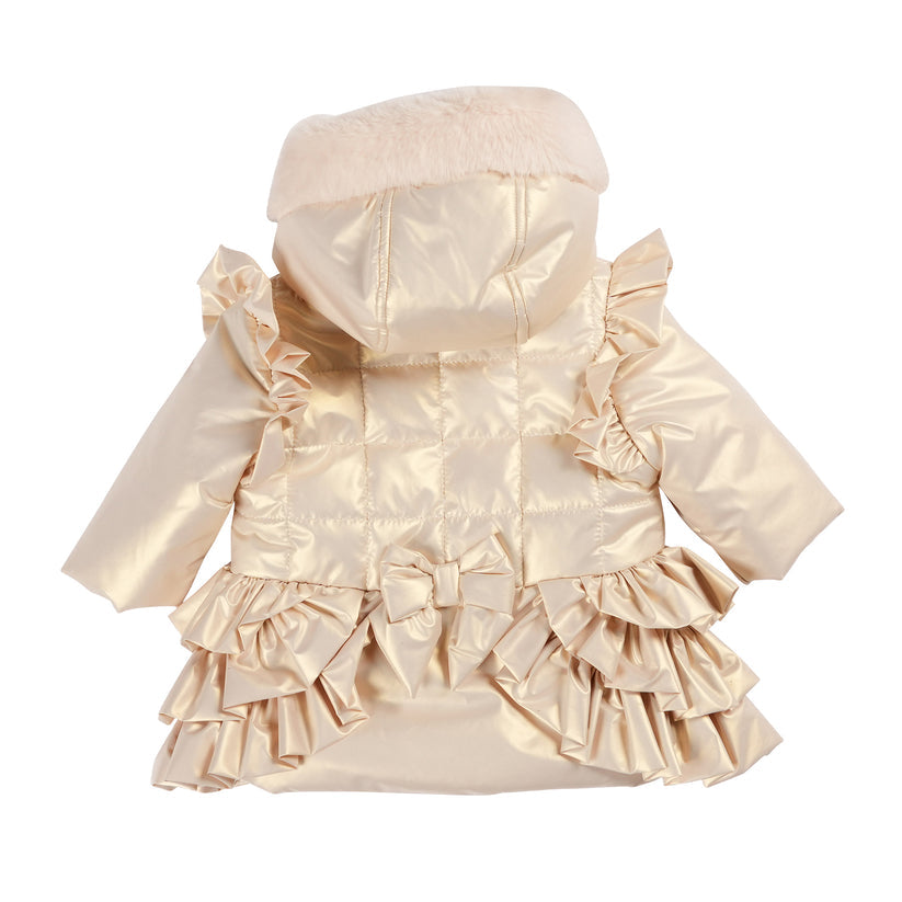 Mintini Girls Gold Coat With Diamante detail & Bow Back - MB5934