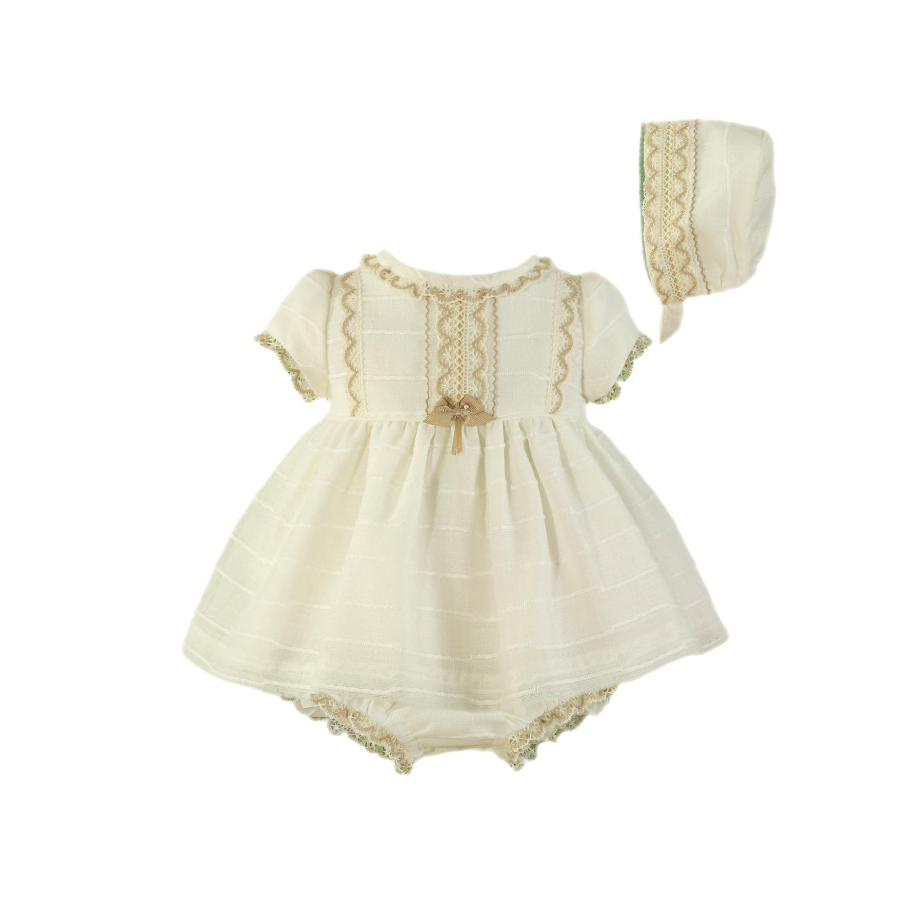 Miranda Baby Girls Ivory & Beige Dress, Pants & Bonnet Set - 0021 VBG
