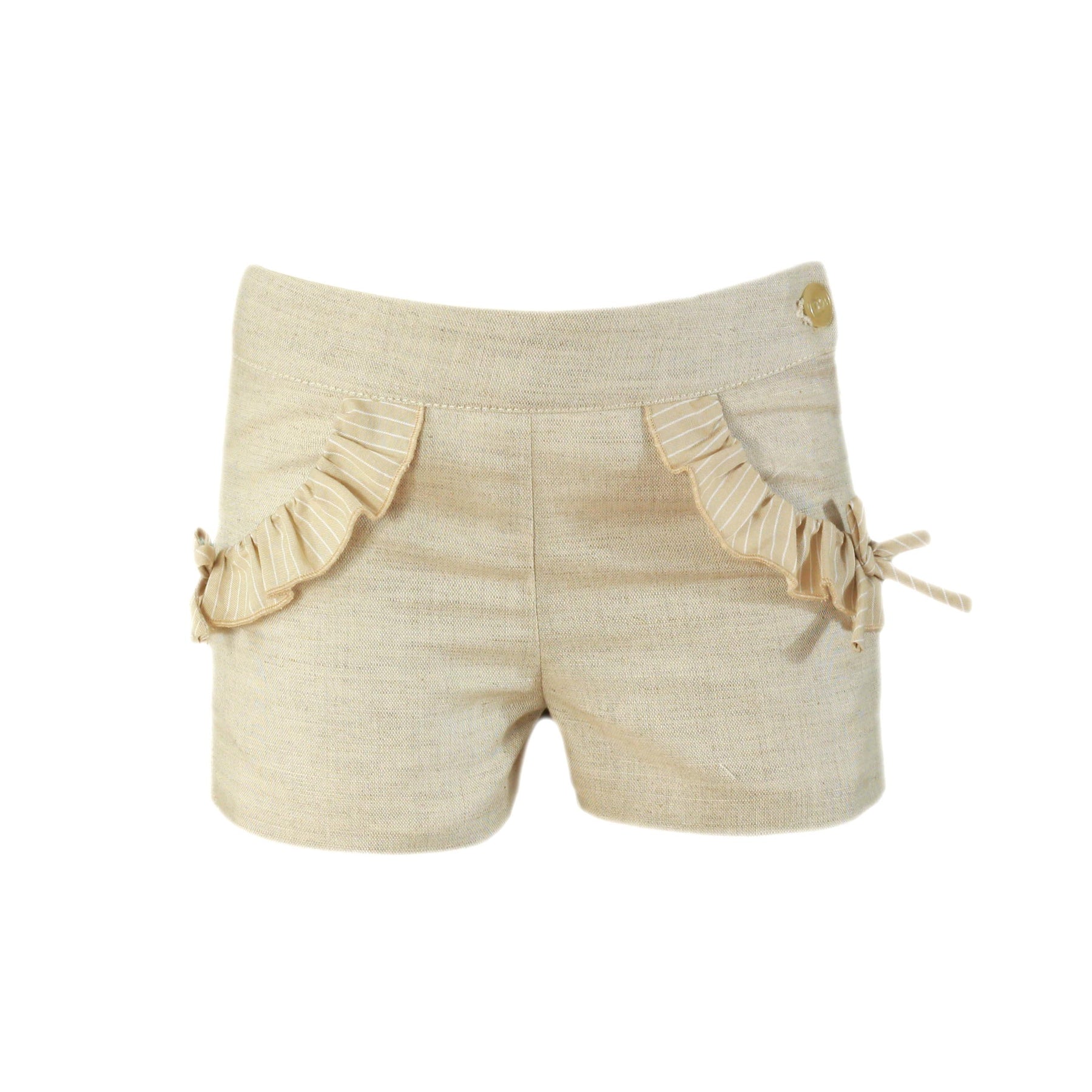 Discover Miranda Shorts Set. Made with ivory and beige cotton blend, featuring a bow detail and elasticated waistband. This set is perfect for the summer season.