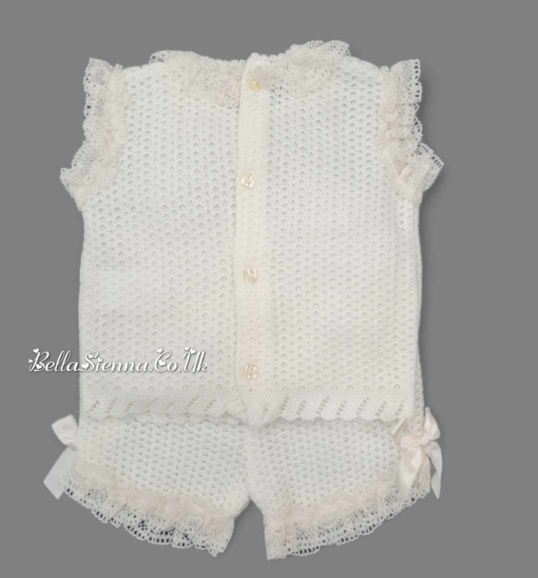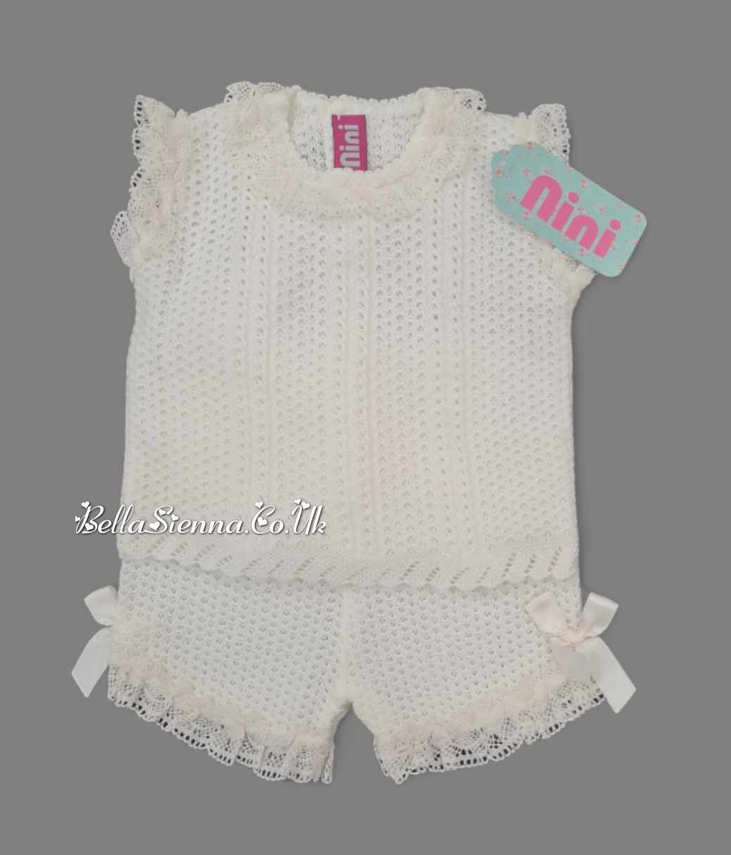 Nini Baby Girls Fine Open Knit Ivory Summer Set - VR031