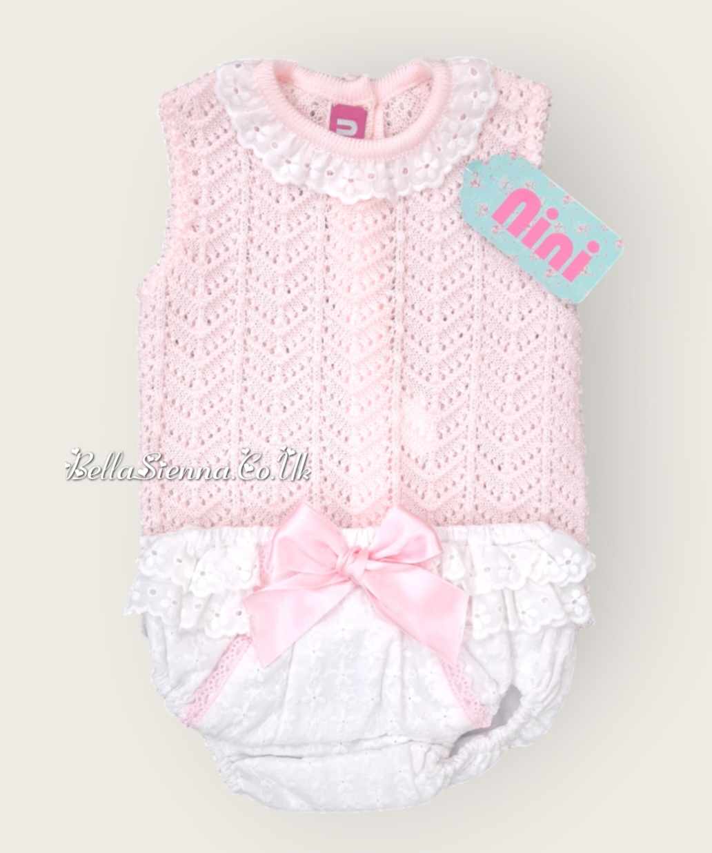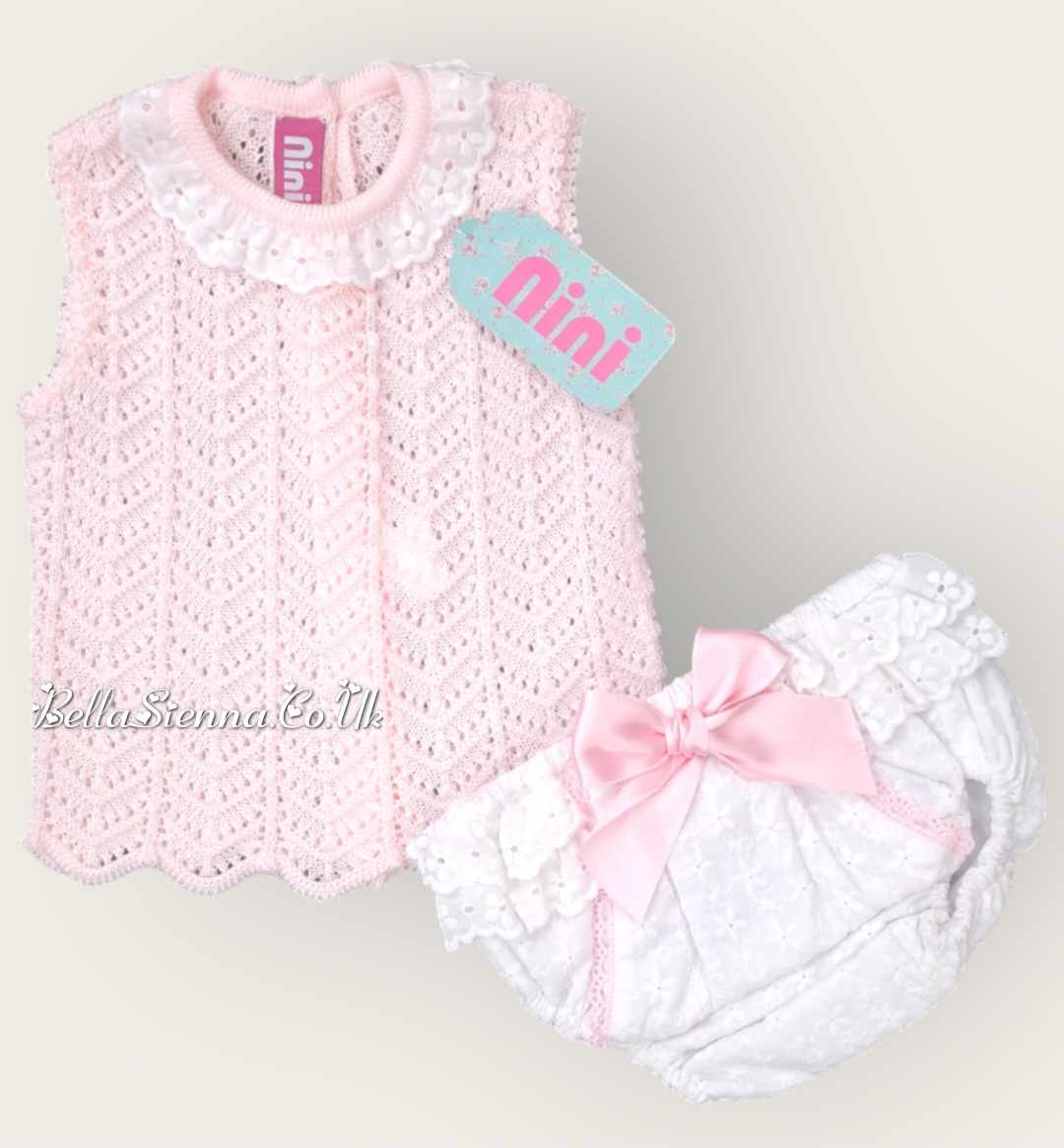 Nini Baby Girls Fine Pink And White Knit Summer Set
