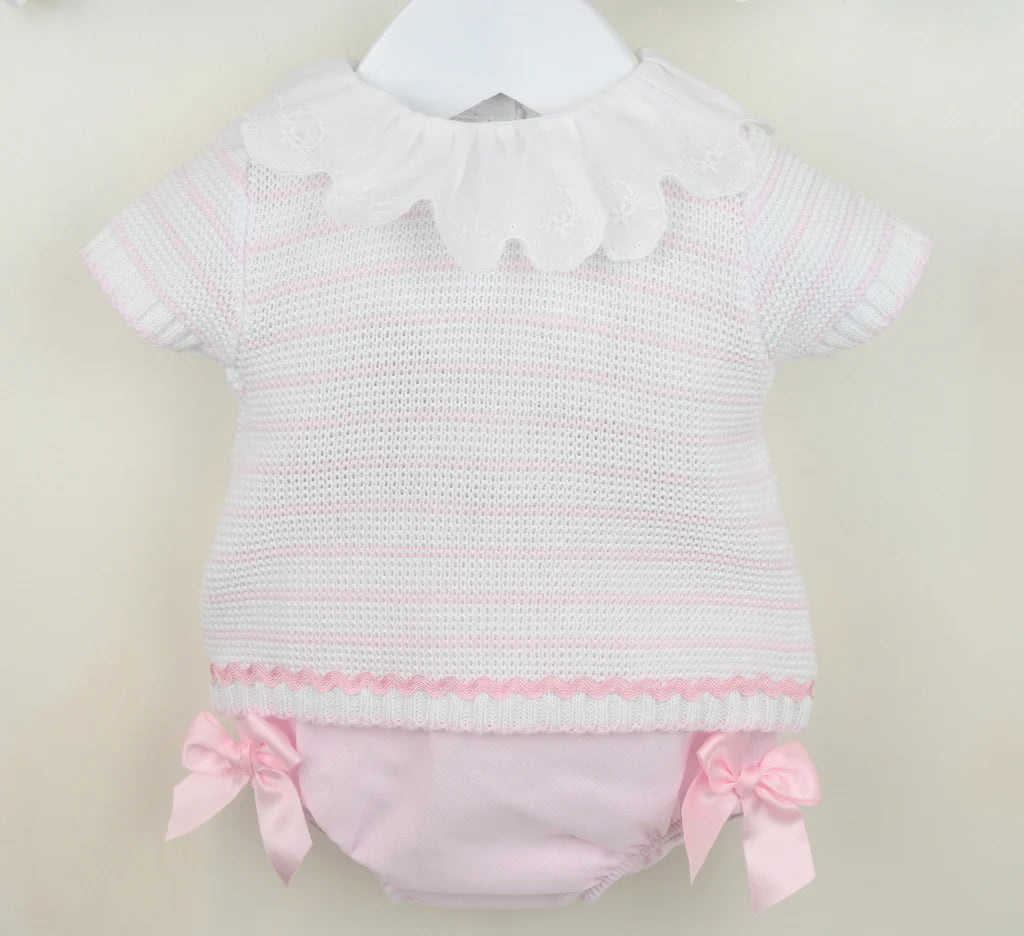 Pex "Tabitha" Pink & White Knitted Top & Jam Pants Set With Bows - B084501405