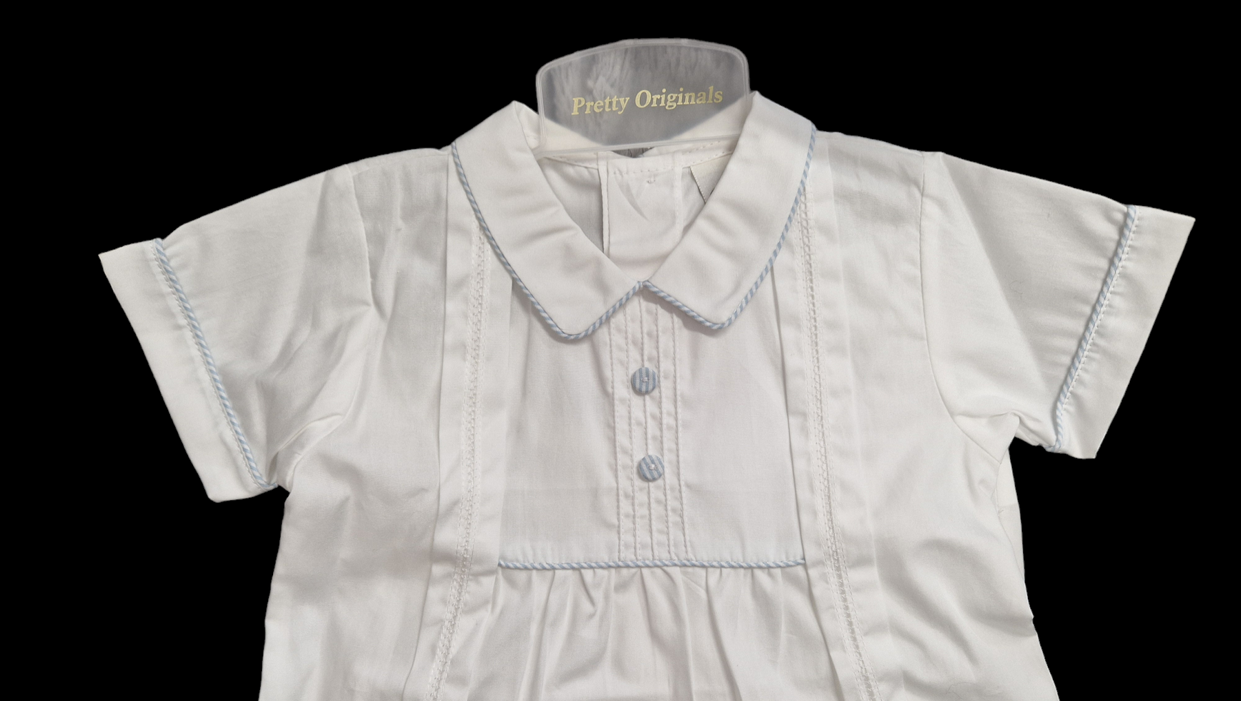 Pretty Orginals Boys White & Blue Traditional Romper - Christening - DL61538