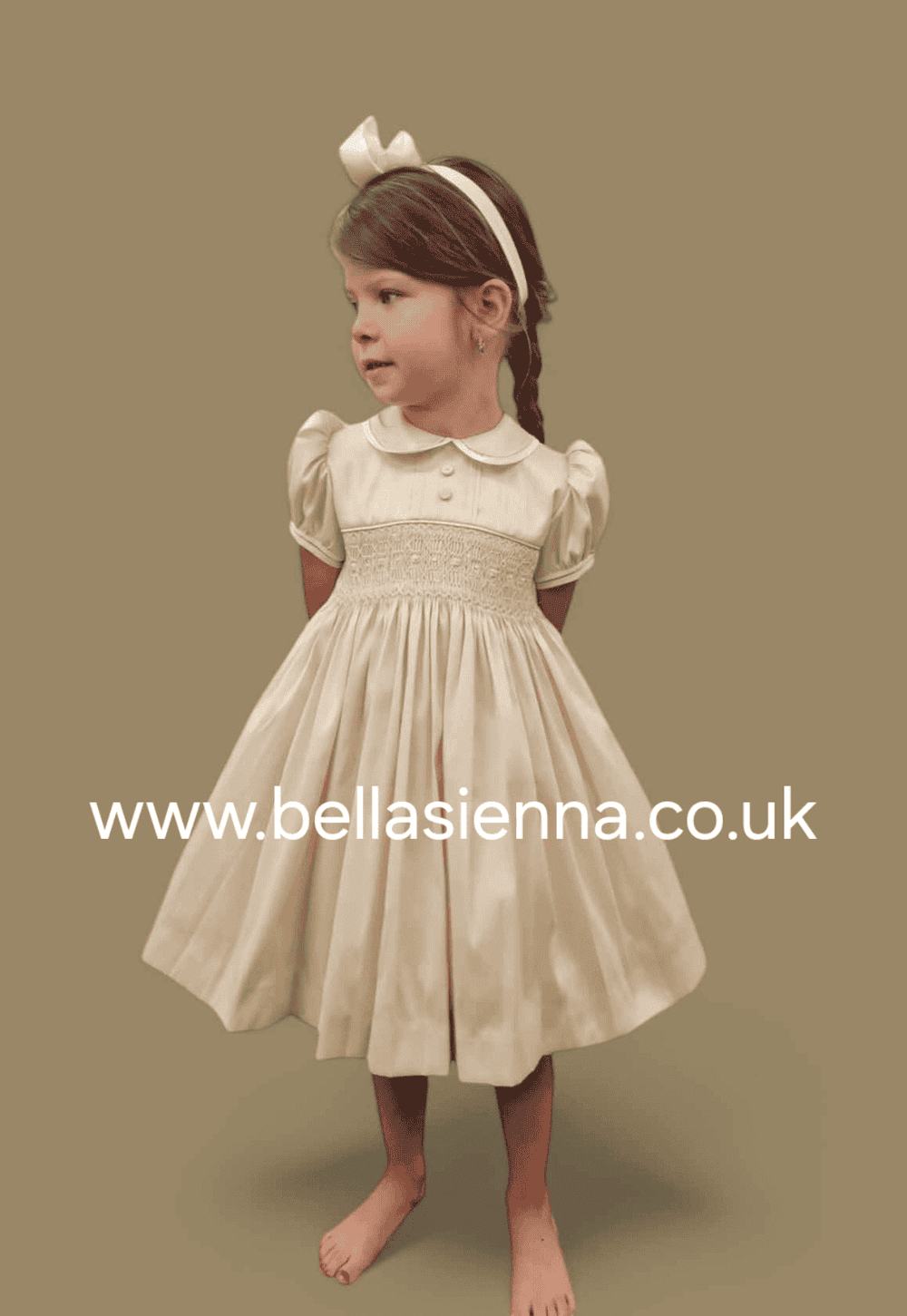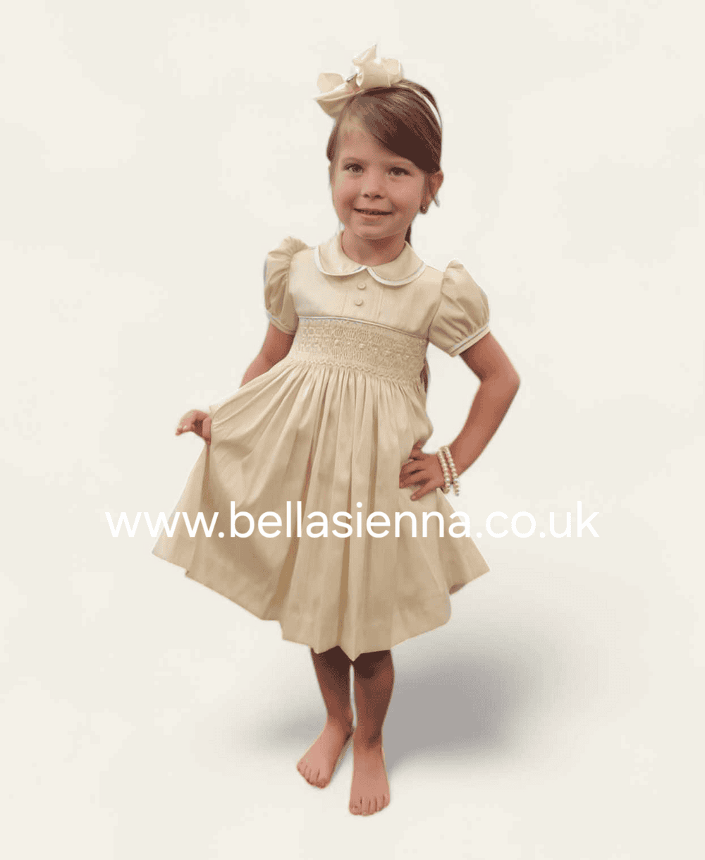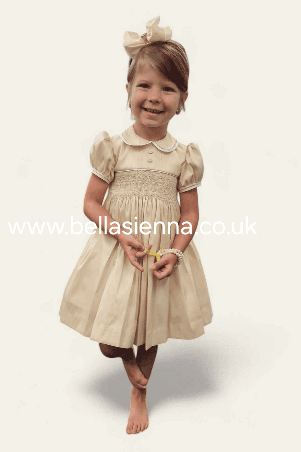 Pretty Originals Hand Smocked "Luxe" Fabric Dress With Built In Underskirt - BD02289 - Wheat/Beige