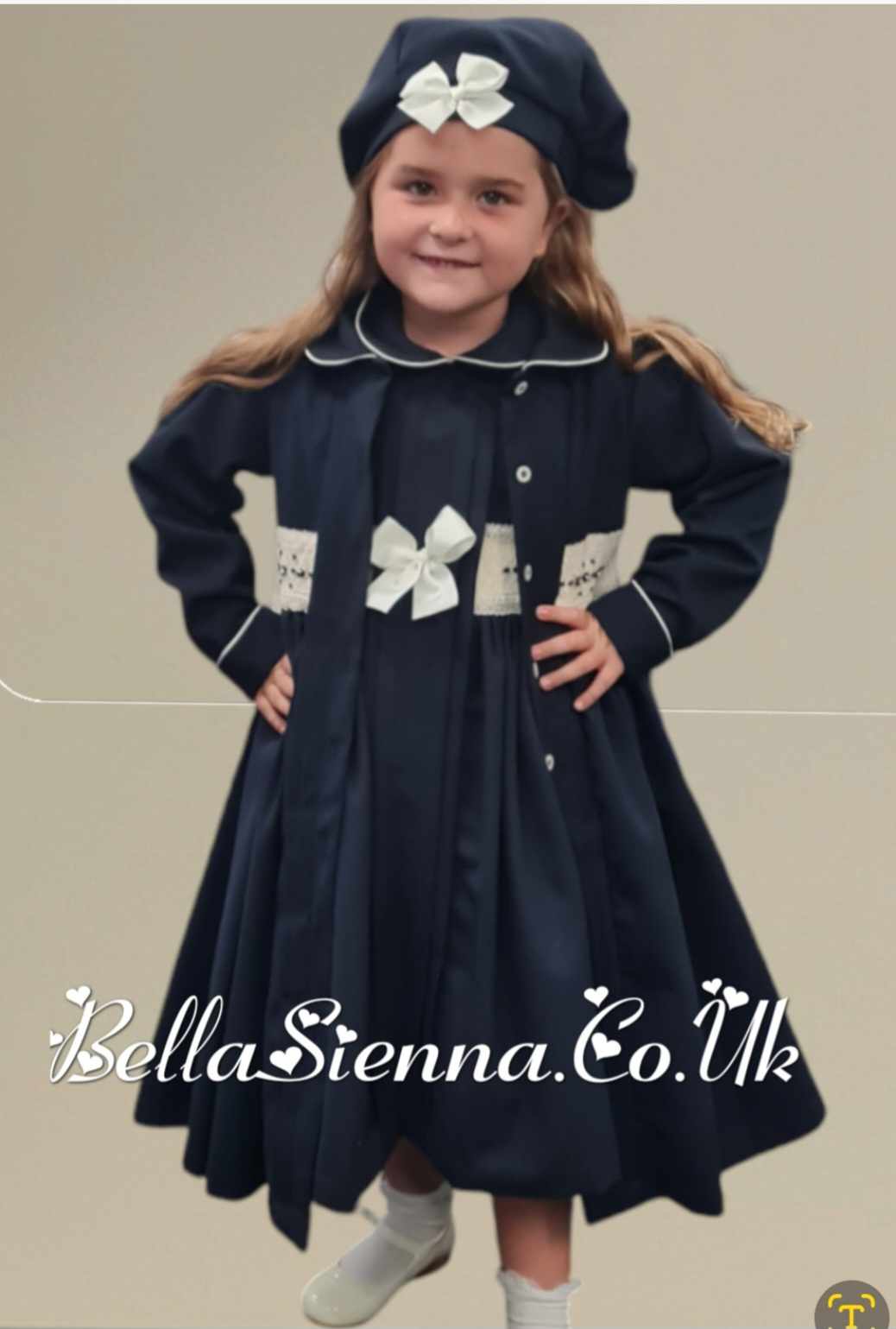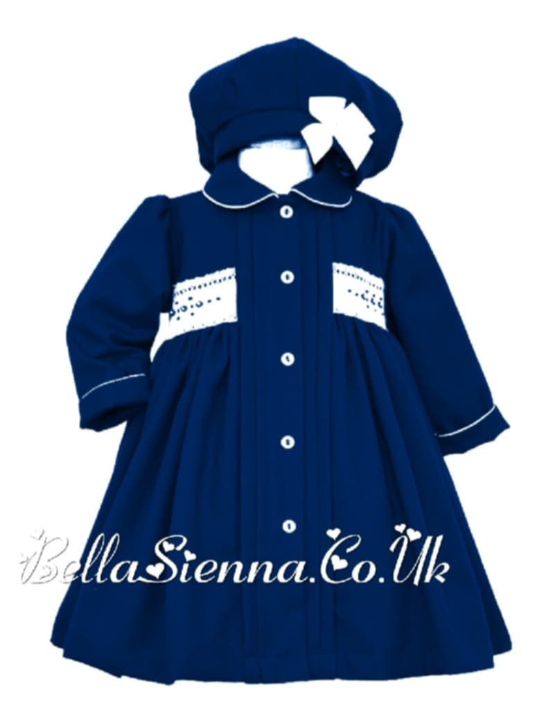 Pretty Originals Hand Smocked Navy & Cream Traditional Style Coat & Matching Hat - MC01409
