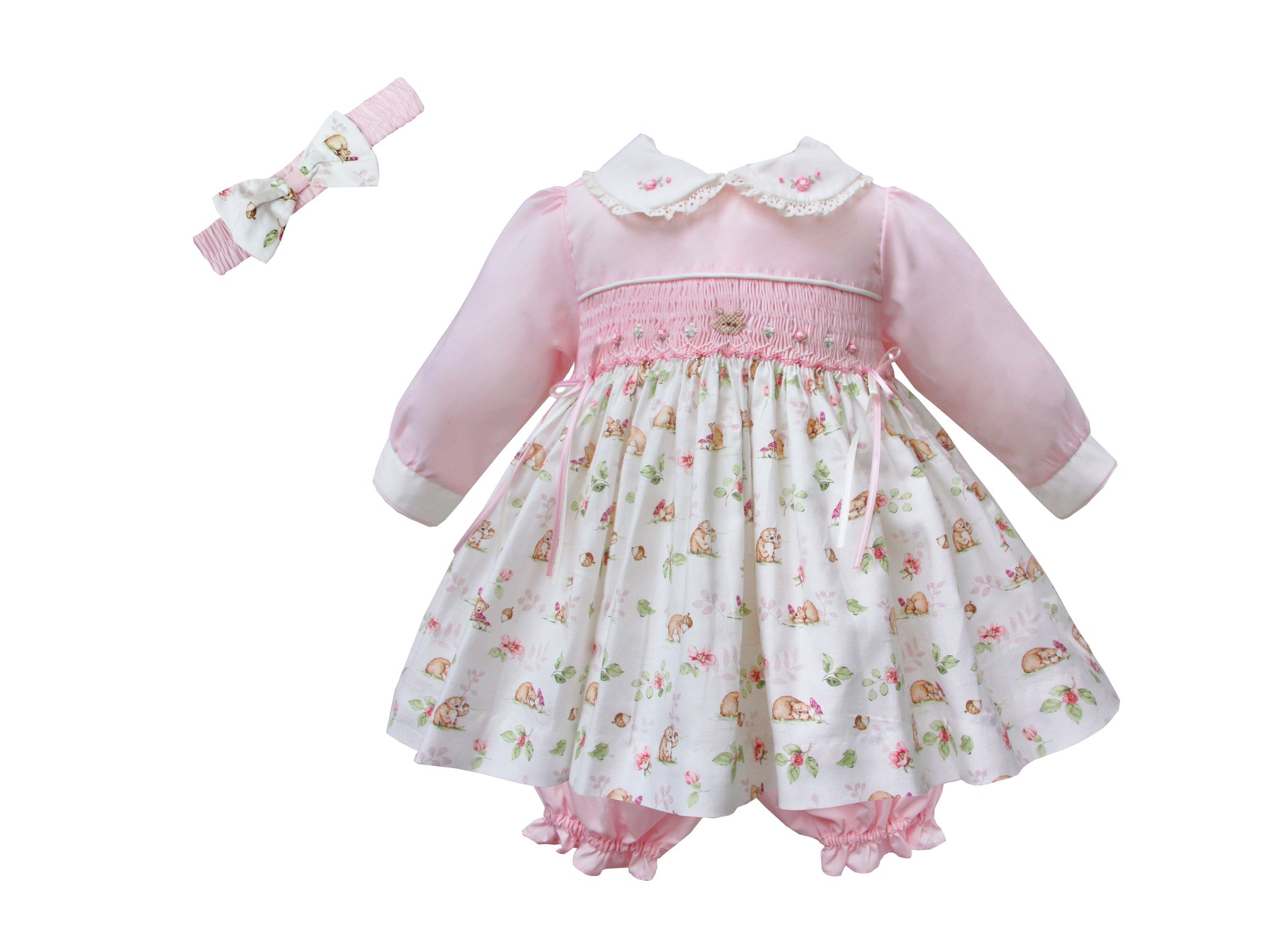 Pretty Originals Pink Floral & Bear Print Dress, Bloomers & Headband/Hairclip - MT02343
