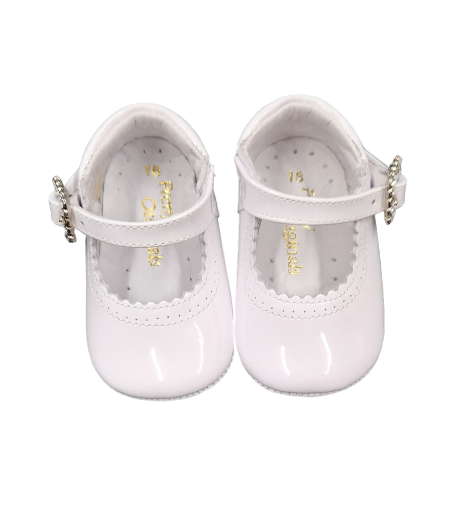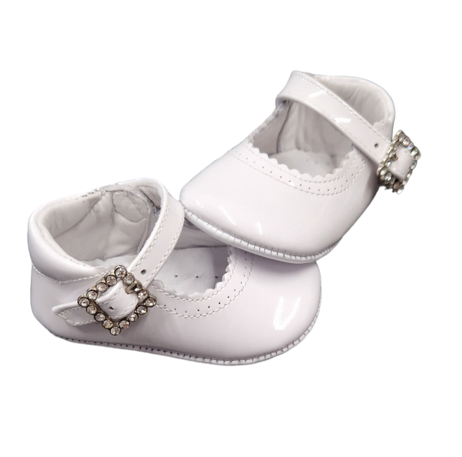 Pretty Originals White Patent Leather Mary Jane Pram Shoes With Diamante Buckle - UE02191A