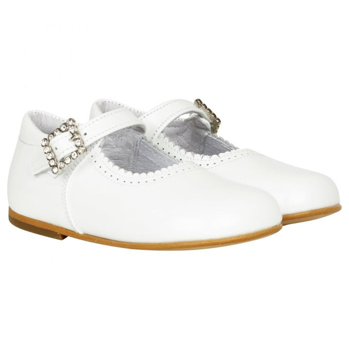 Pretty Originals White Patent Leather Mary Jane Shoes With Diamante Buckle - UE1709D
