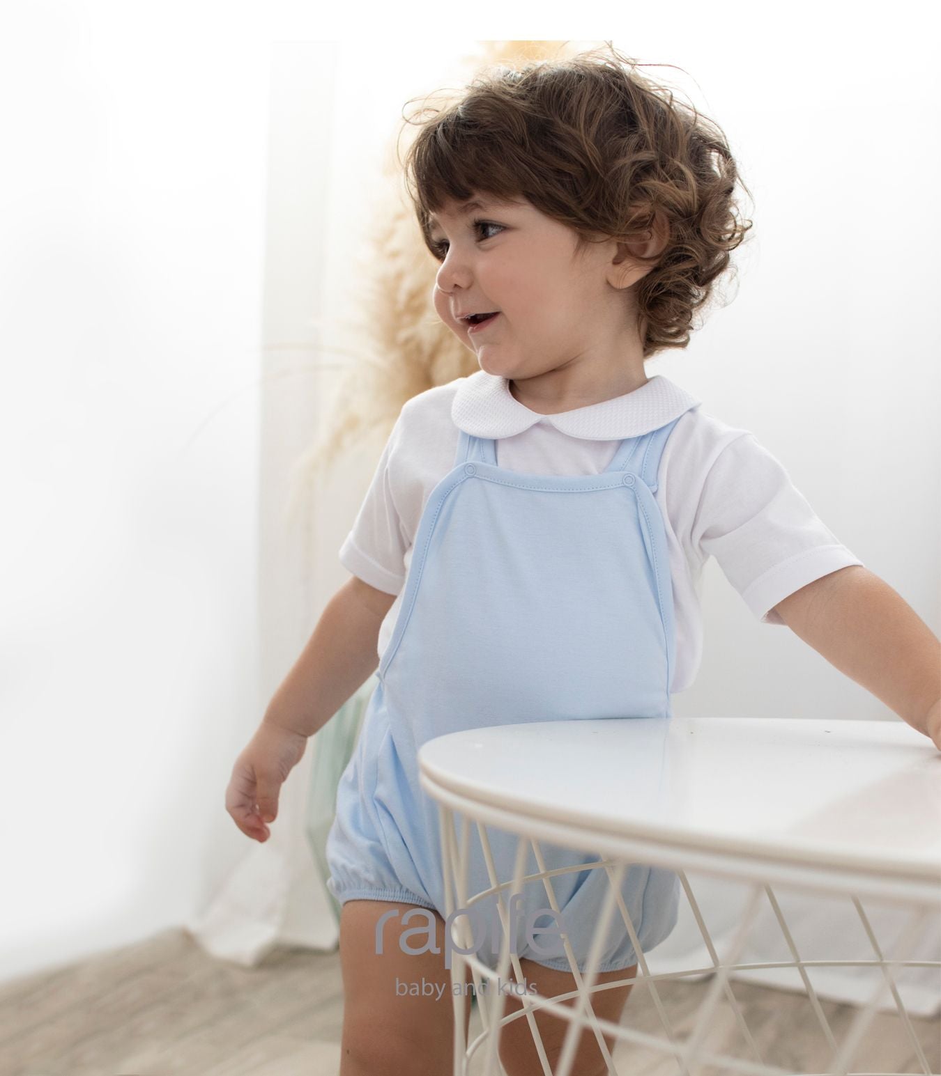 Rapife Boys Two Piece Bodysuit & Romper is a practical choice for your child. Crafted from quality materials, it features a white collared bodysuit and blue romper. Perfect for every occasion.