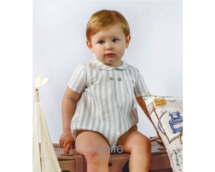 Rapife Ivory And Beige Striped Romper For Baby Boys