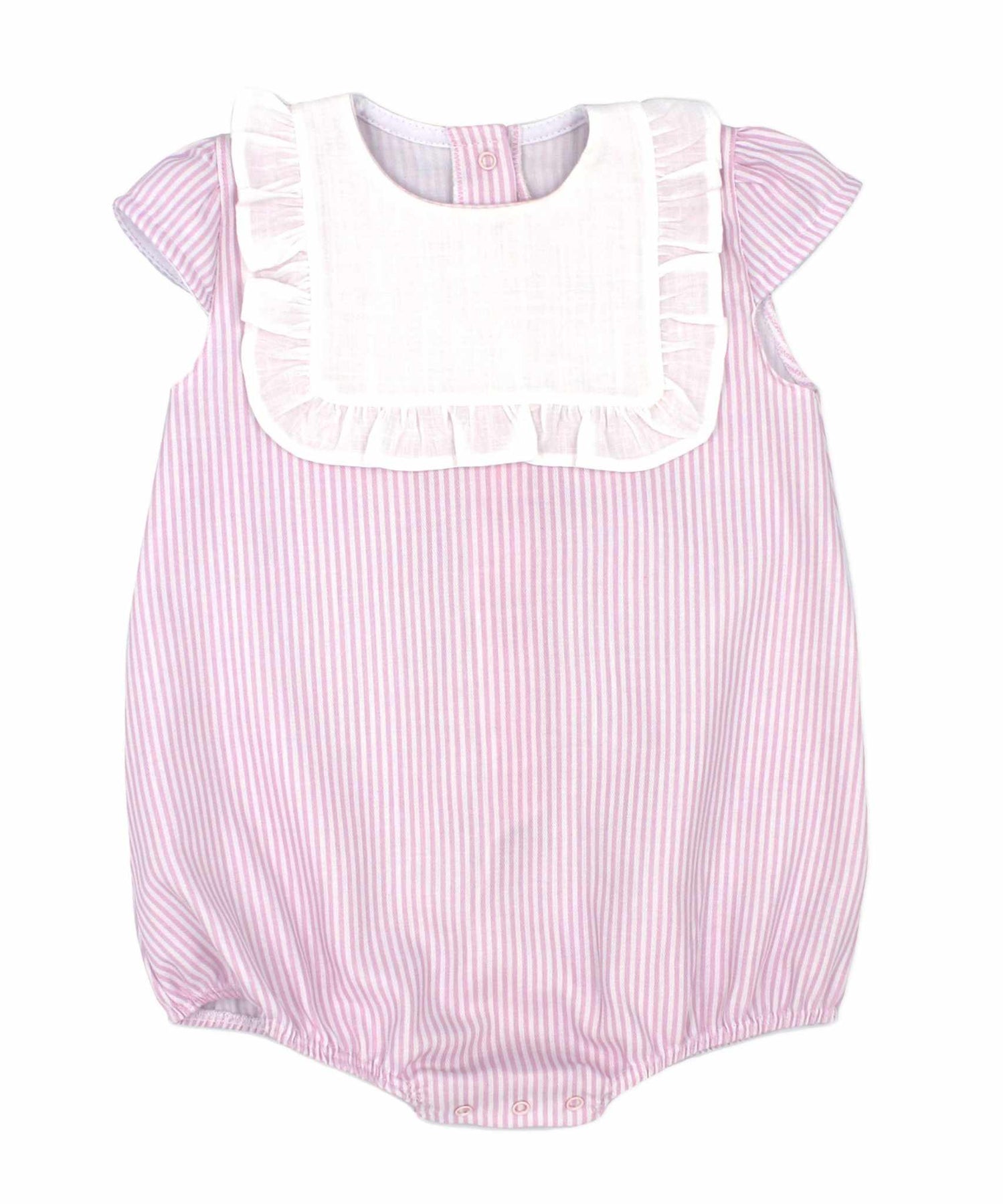Introducing the Rapife Girls Pink & White Stripe Romper. With popper fastenings to the back and between the legs, this romper offers both style and convenience for your little one. Made with high-quality fabric, it ensures comfort and durability.