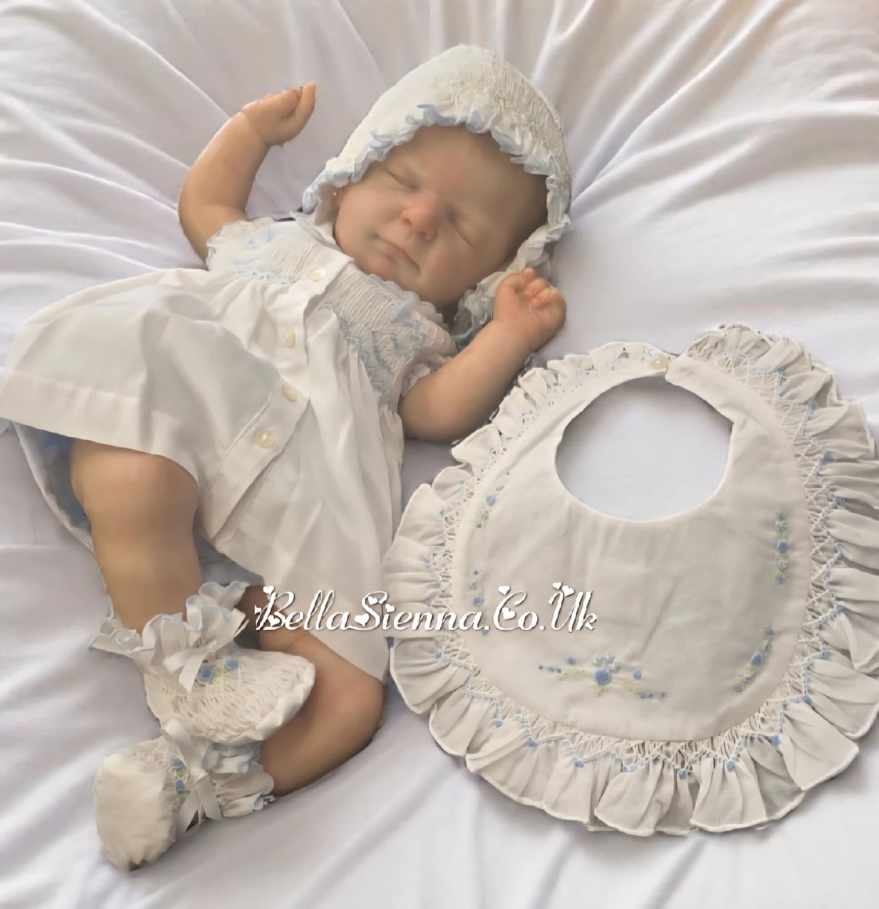 Luxurious mother of pearl button fastening down front of blouse. Elasticated waist and leg waist to shorts for baby's comfort. Lined.