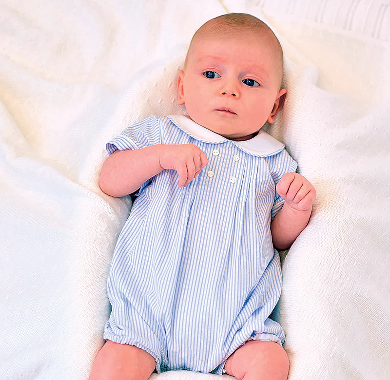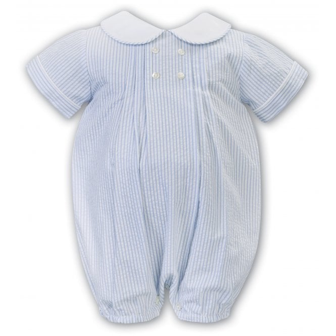 This boys' romper from Sarah Louise is the perfect blend of comfort and style! Soft seersucker cotton is breathable and lightweight, while poppers and buttons make changing a breeze. With a timeless blue and white striped pattern and box pleats for a loose fit, it's the ideal way to dress your little one in style!