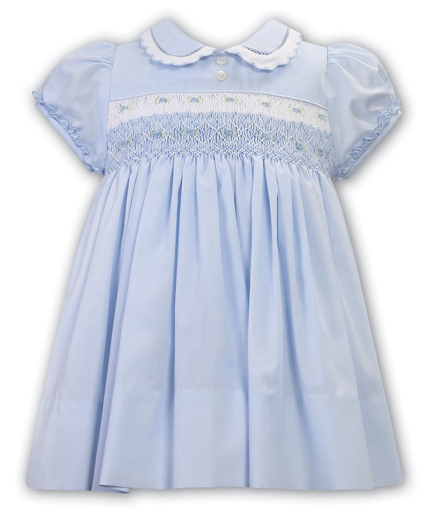 Sarah Louise Blue & White Hand Smocked Dress With Collar - 013200