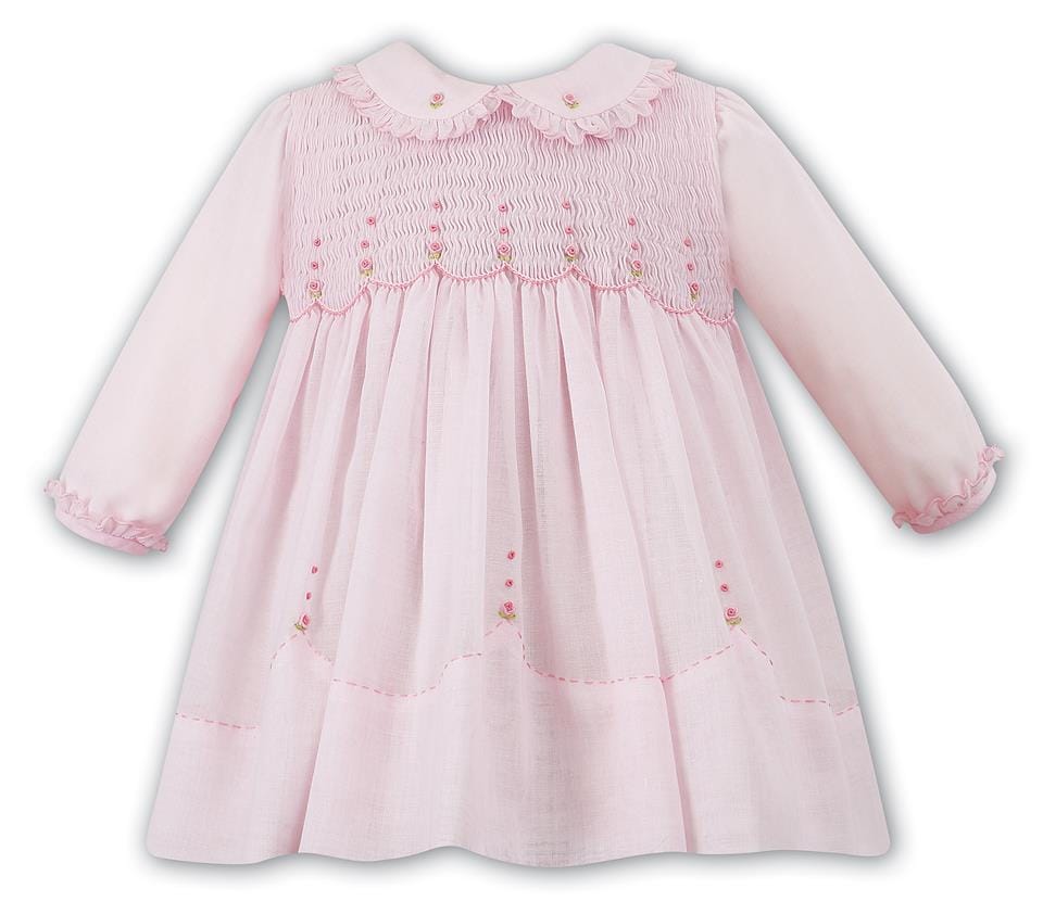 Sarah Louise Pink Voile Smocked Dress With Collar - 010870