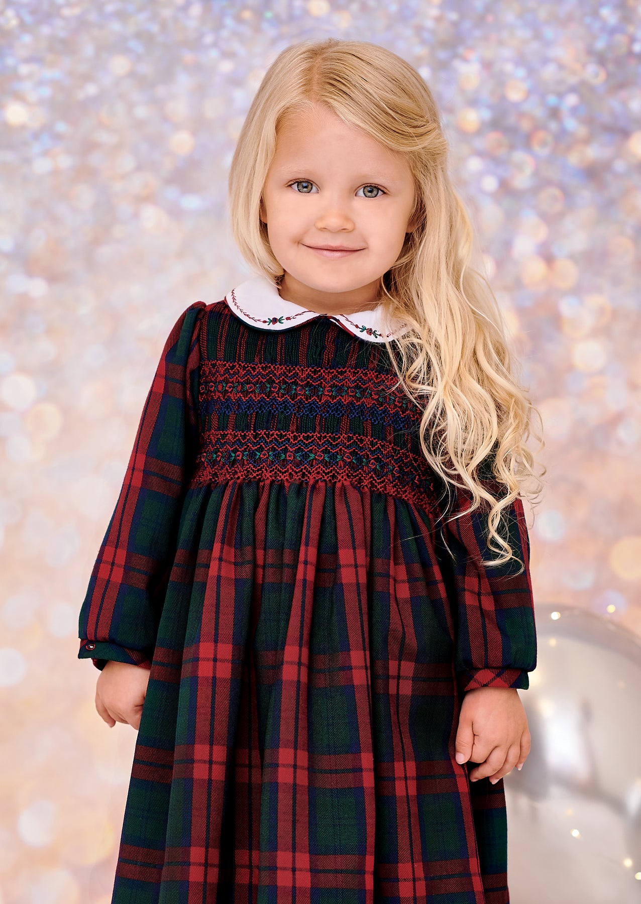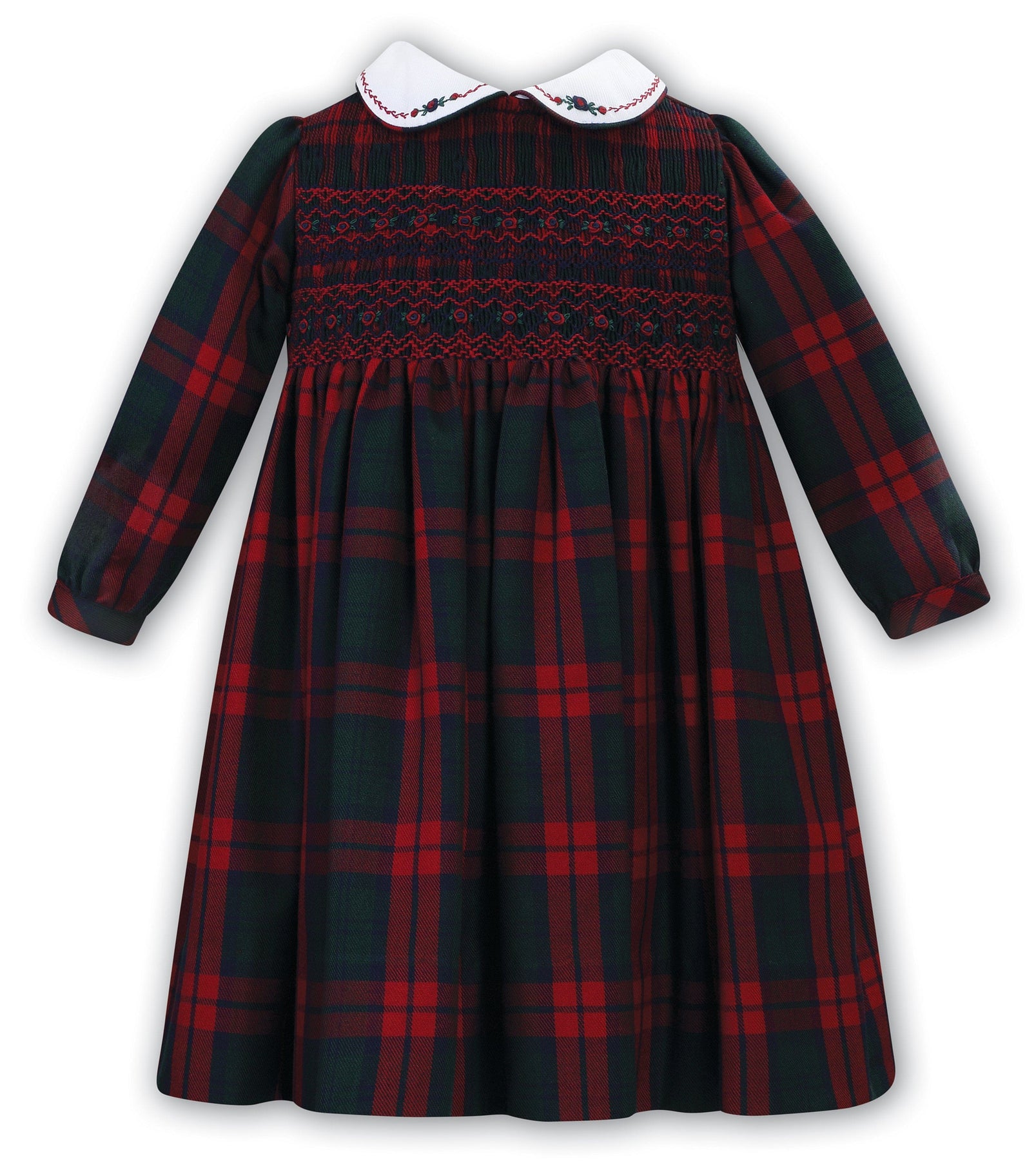 Sarah Louise Red & Green Tartan Hand Smocked Dress - 013137