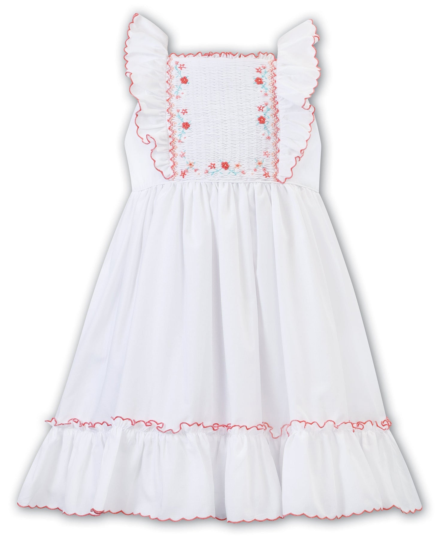 Sarah Louise White & Peach Hand Smocked Dress - 012945