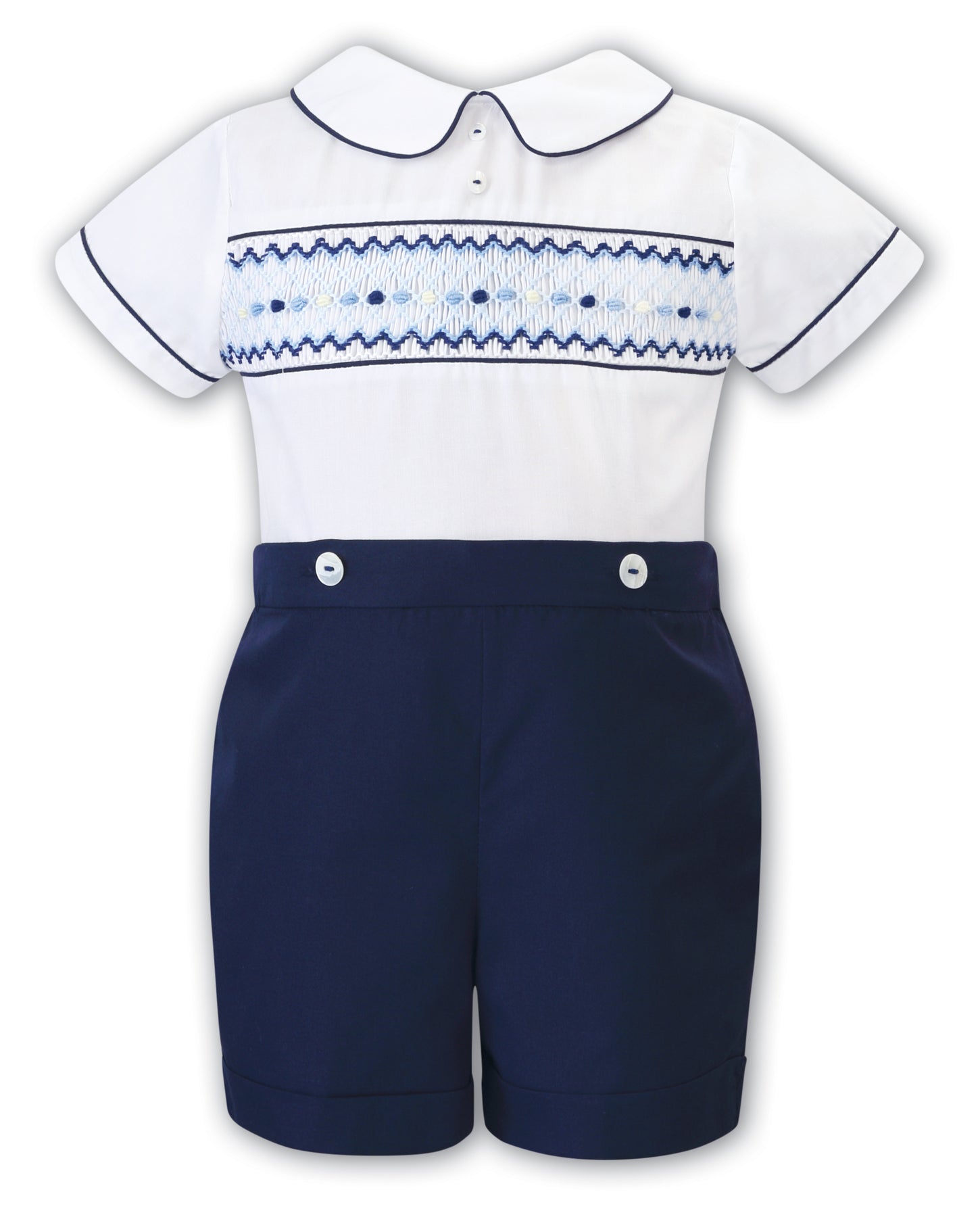 Sarah Louise White, Blue, Navy & Yellow Smocked Outfit - 012296