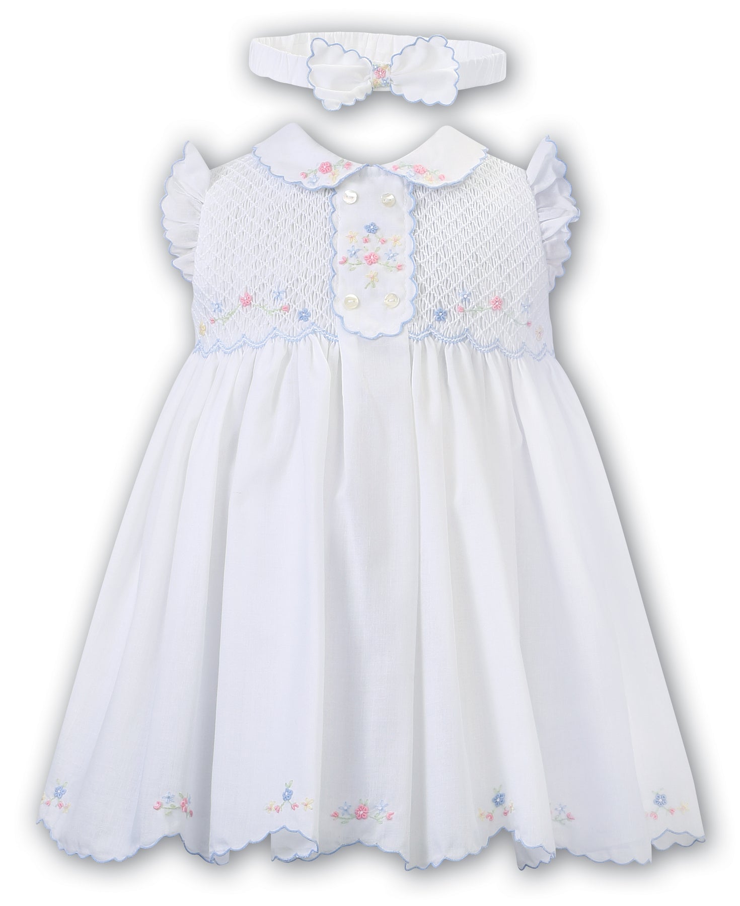 Sarah Louise White, Blue & Pink Hand Smocked Dress & Matching Headband - 012897