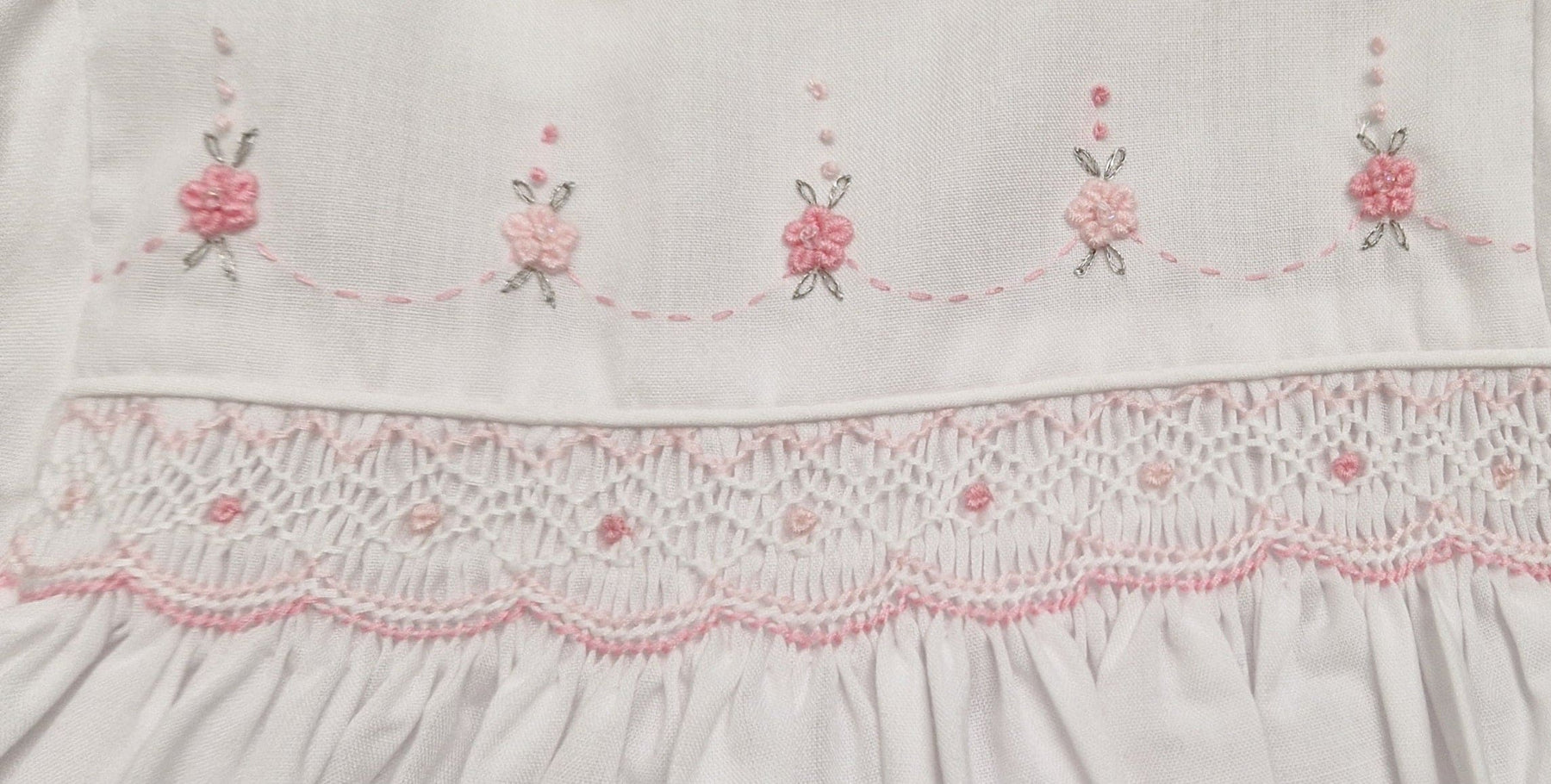 Sarah Louise White, Pink & Silver Hand Smocked Dress - 010472