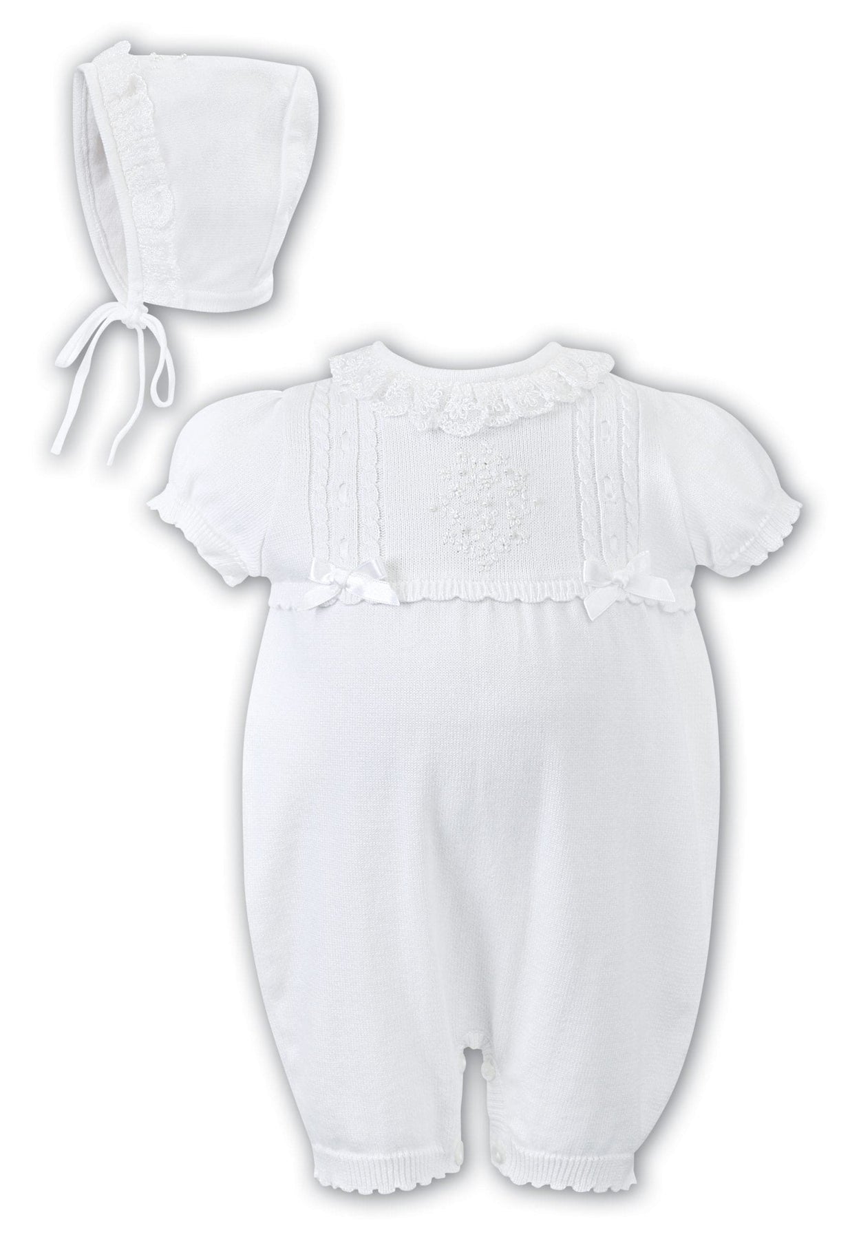 Sarah Louise White Romper & Matching Bonnet - 008012