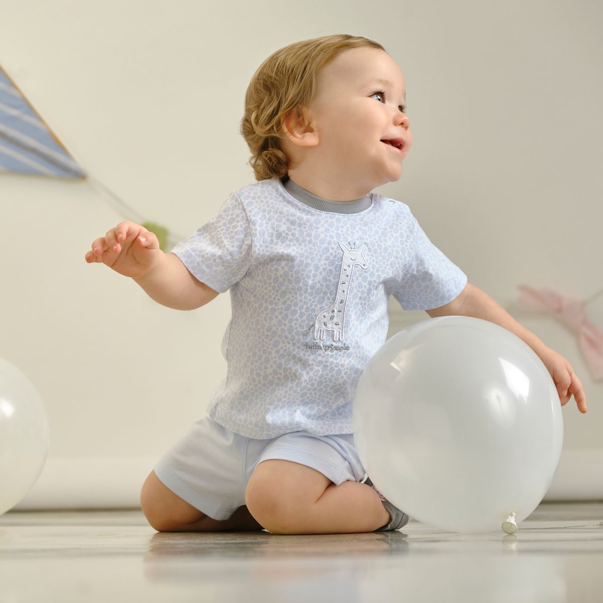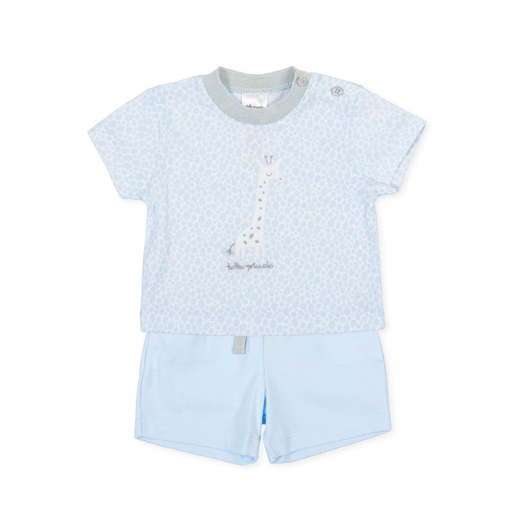 Piccolo two-piece giraffe set is crafted from the highest quality materials, designed for optimum comfort and style. Made from a soft cotton-blend material the top has popper fastening, adjustable drawstring shorts.