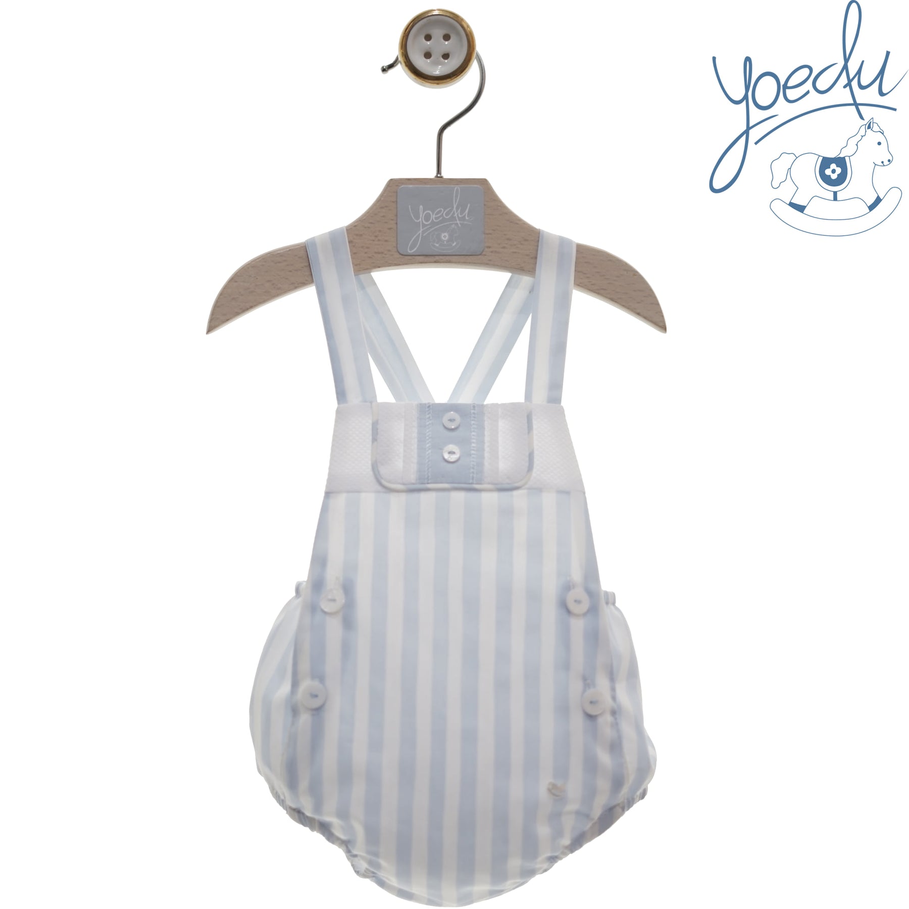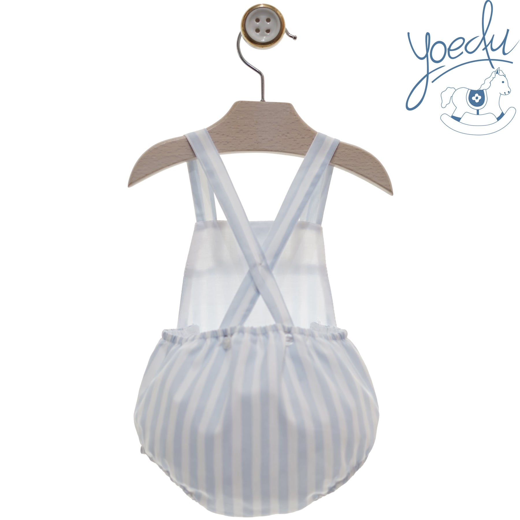 Yoedu Boys romper is perfect for summer. It features a blue and white stripe design and button fastening on either side with an elasticated back for a comfortable fit. Crafted from soft, breathable fabric.