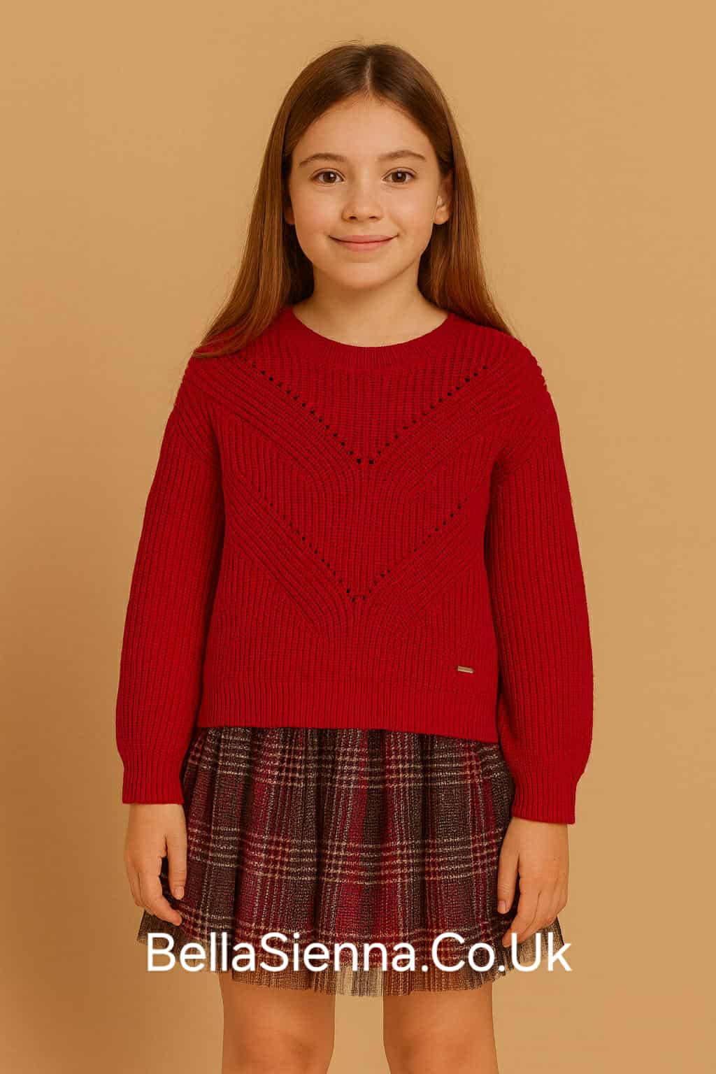 Long sleeved Jumper for girl. Round neckline. Decorative elements: openwork details