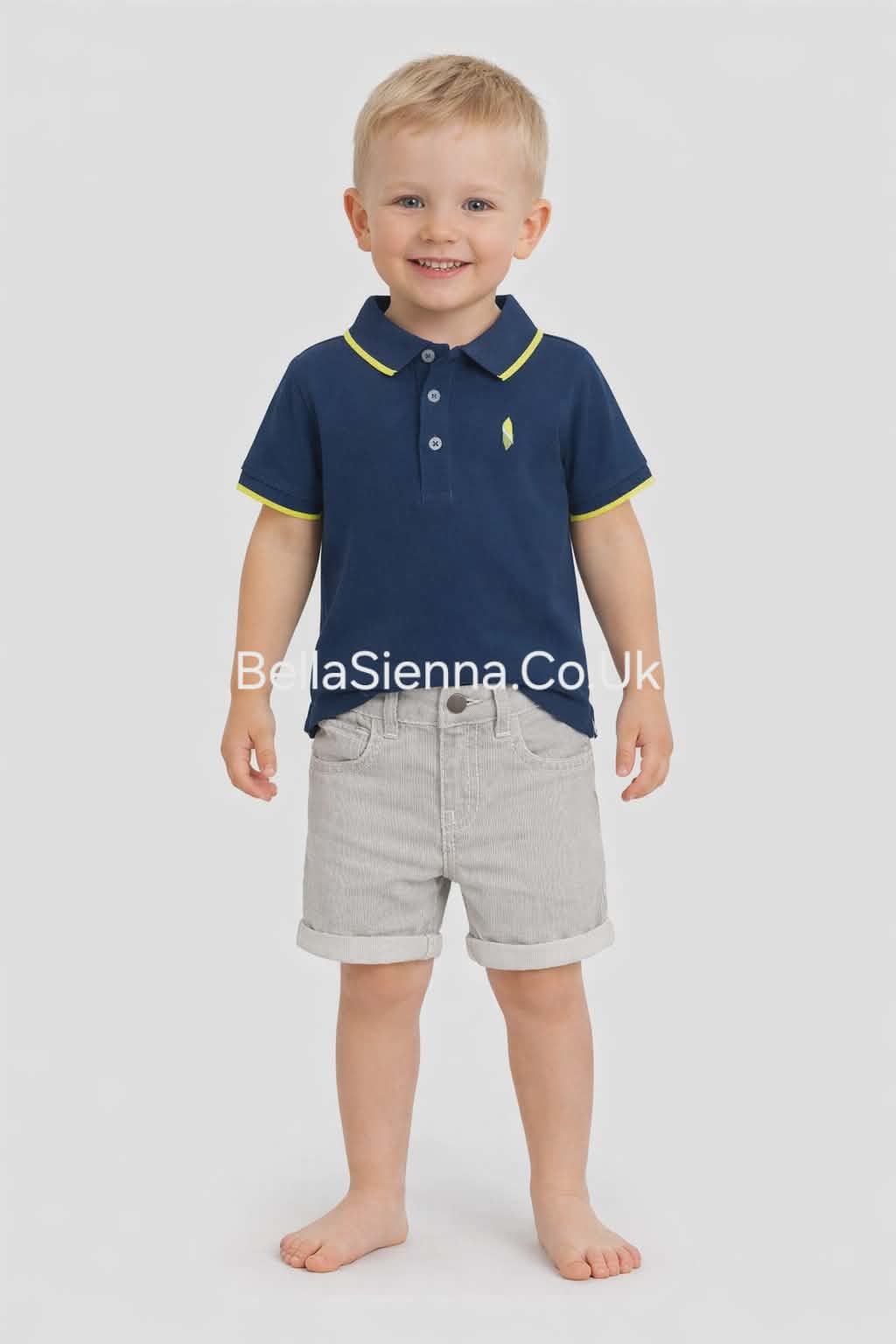 A trendy set for boys by Mayoral. With both garments being made in cotton, the duo consists of a navy polo shirt paired with smart shorts, short sleeves and a motif to the front. Having an adjustable waistband, the shorts come in white and navy blue fine stripe.