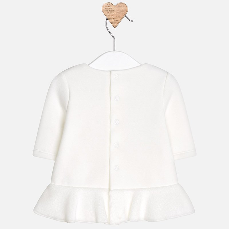 Beautiful off-white velvet dress with penguin print for baby girls by Mayoral, with popper fastening on the back for a neat finish. Ideal for a special occasion, this cosy little dress is so sweet.