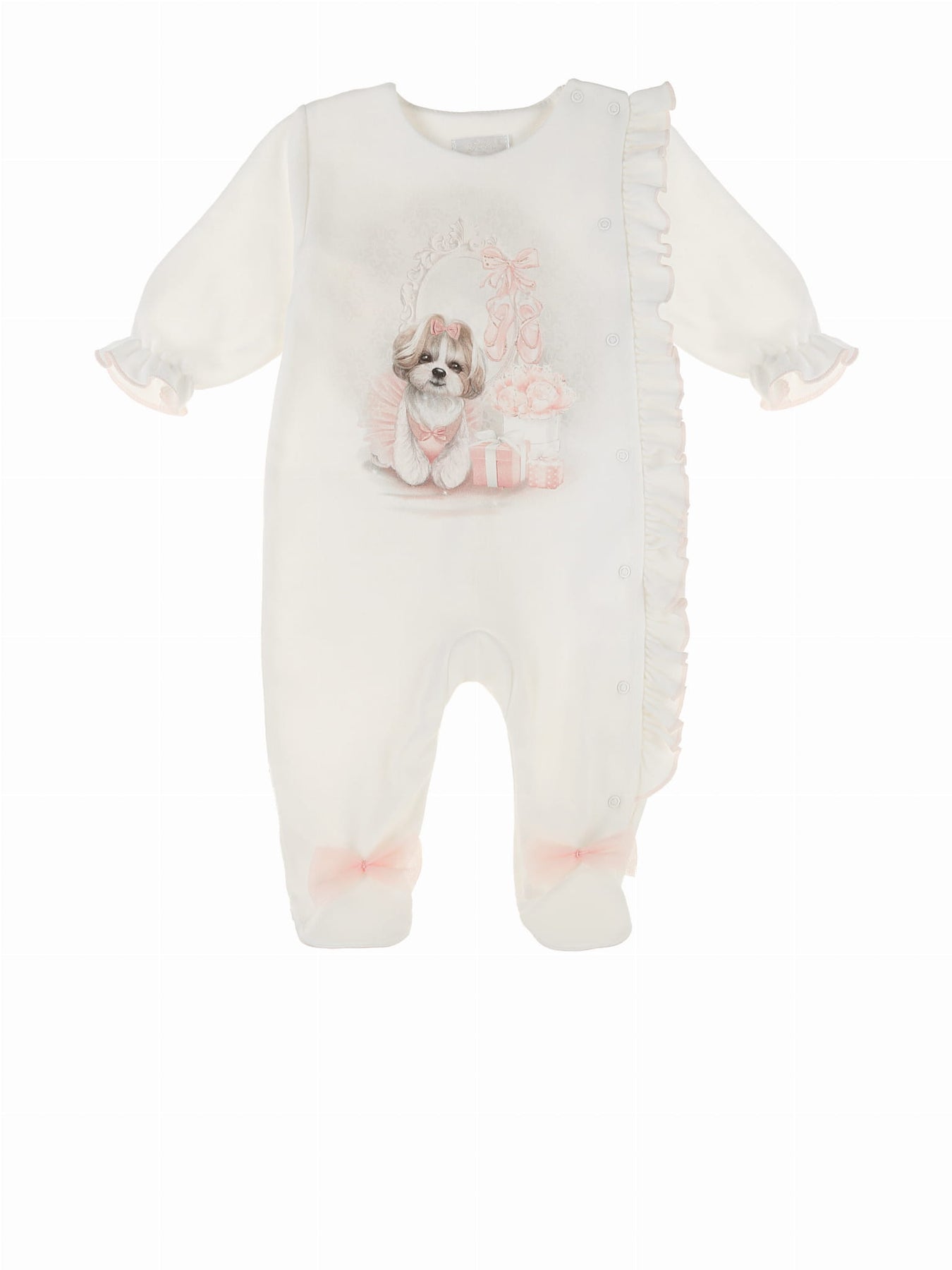 Sofija "Dafne" 100% Cotton Babygrow - Sleepsuit - White With Pink Trim