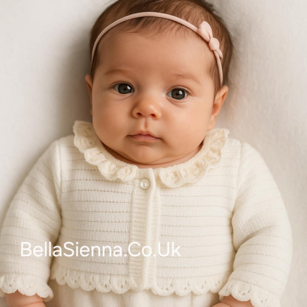 It features an, elegant design in a classic ivory and lace Hue, expertly knitted for a luxurious feel.