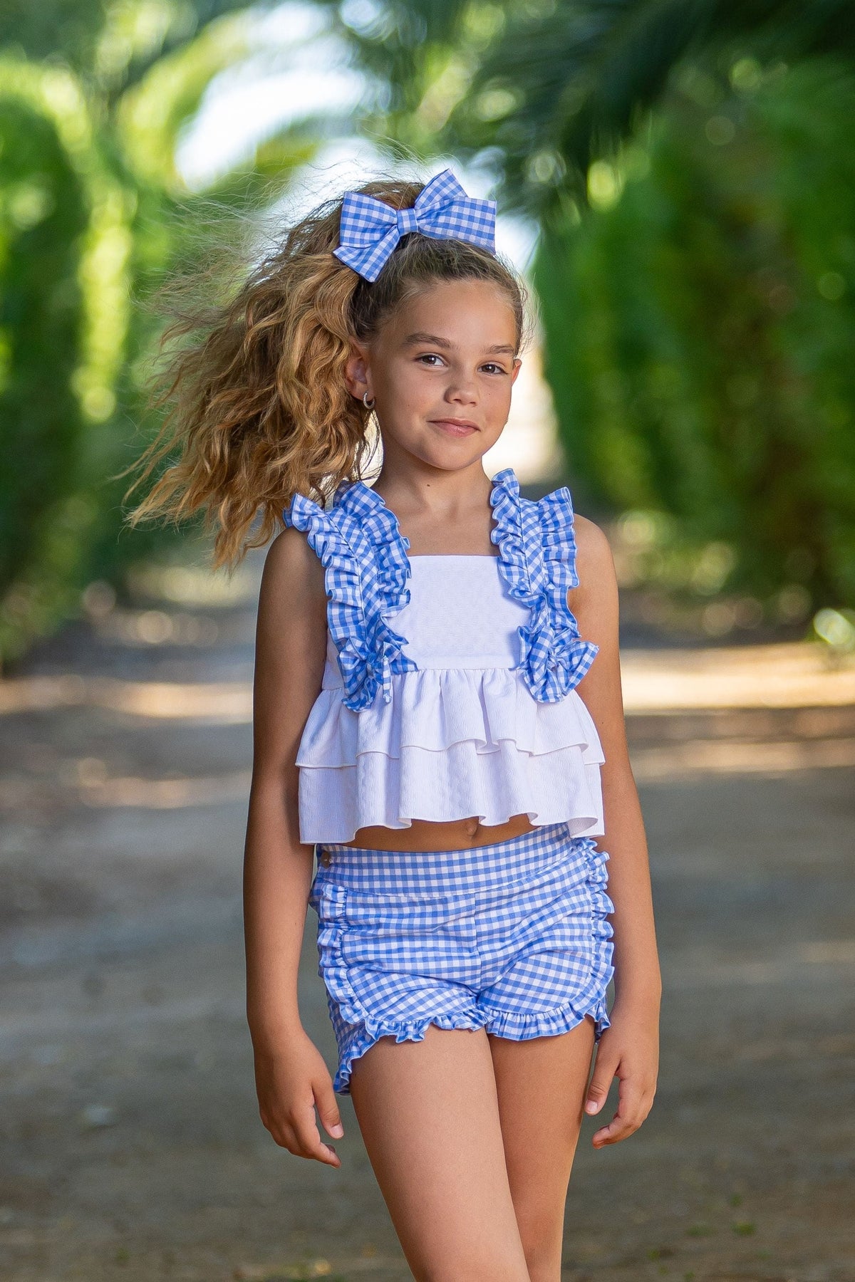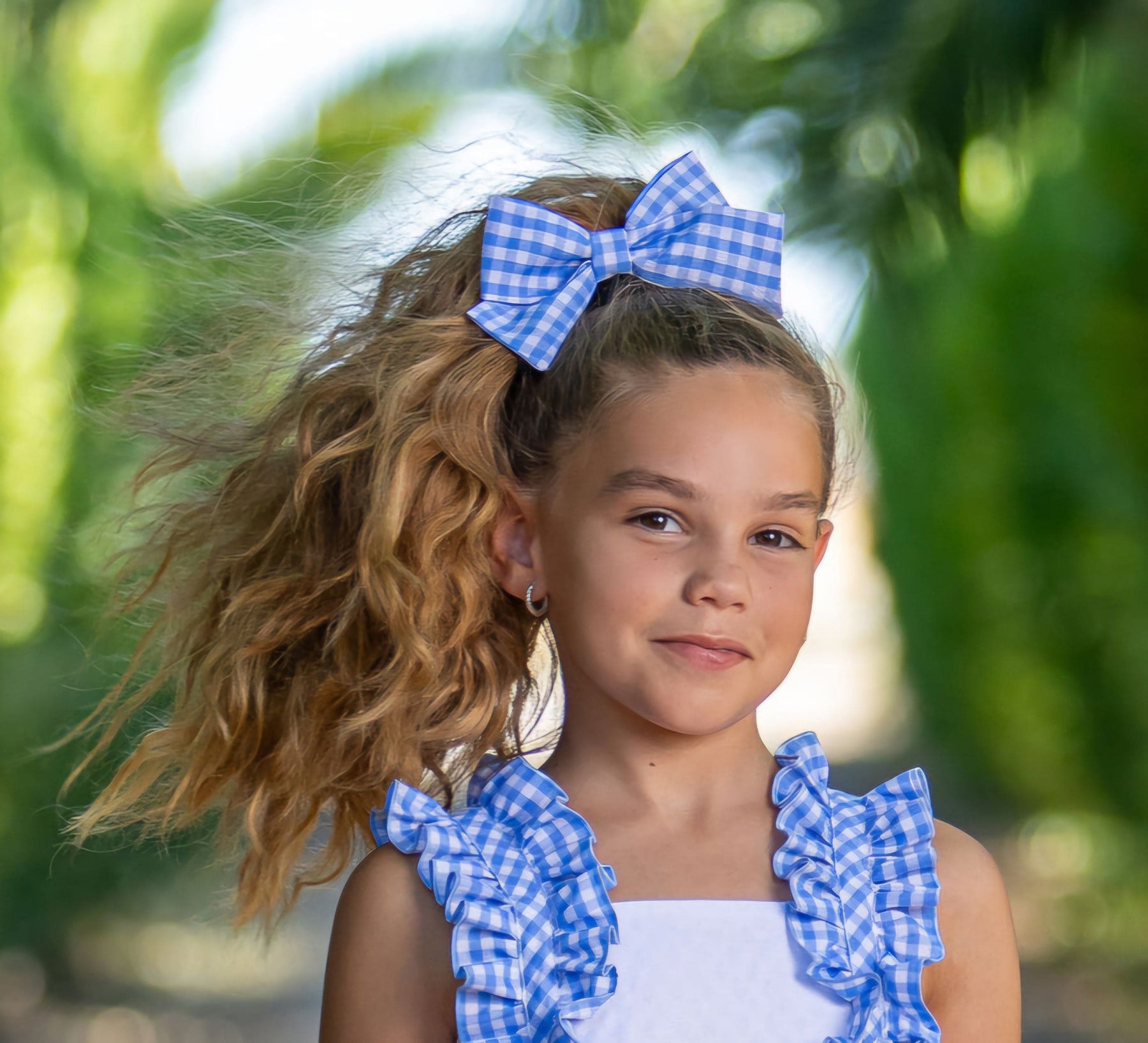 Babine White & Blue Gingham Hair Bow To Match - 2522018 & 2522827