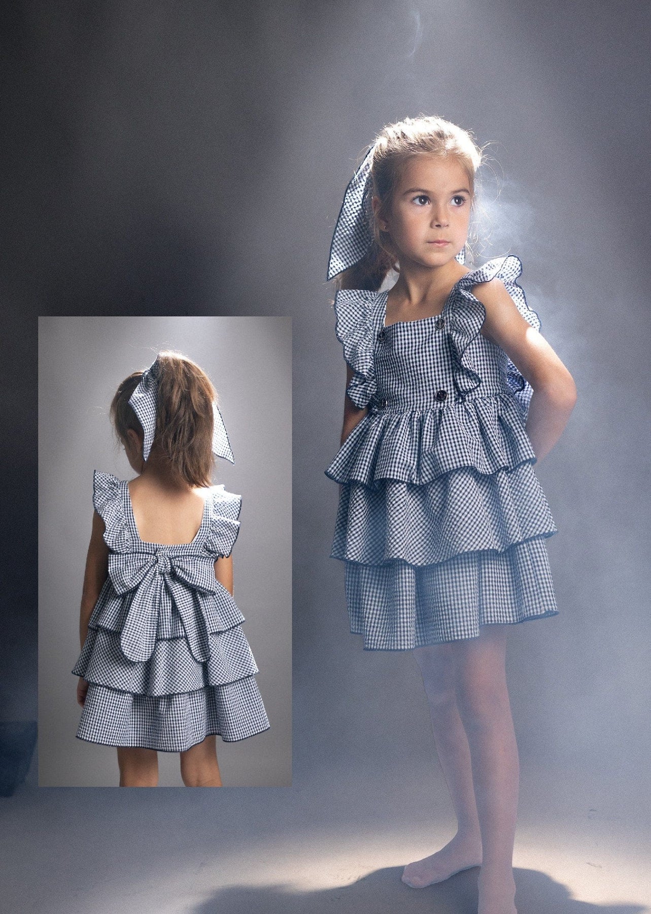 Basmarti Navy & White Gingham Hair band To Match Dress - 25035