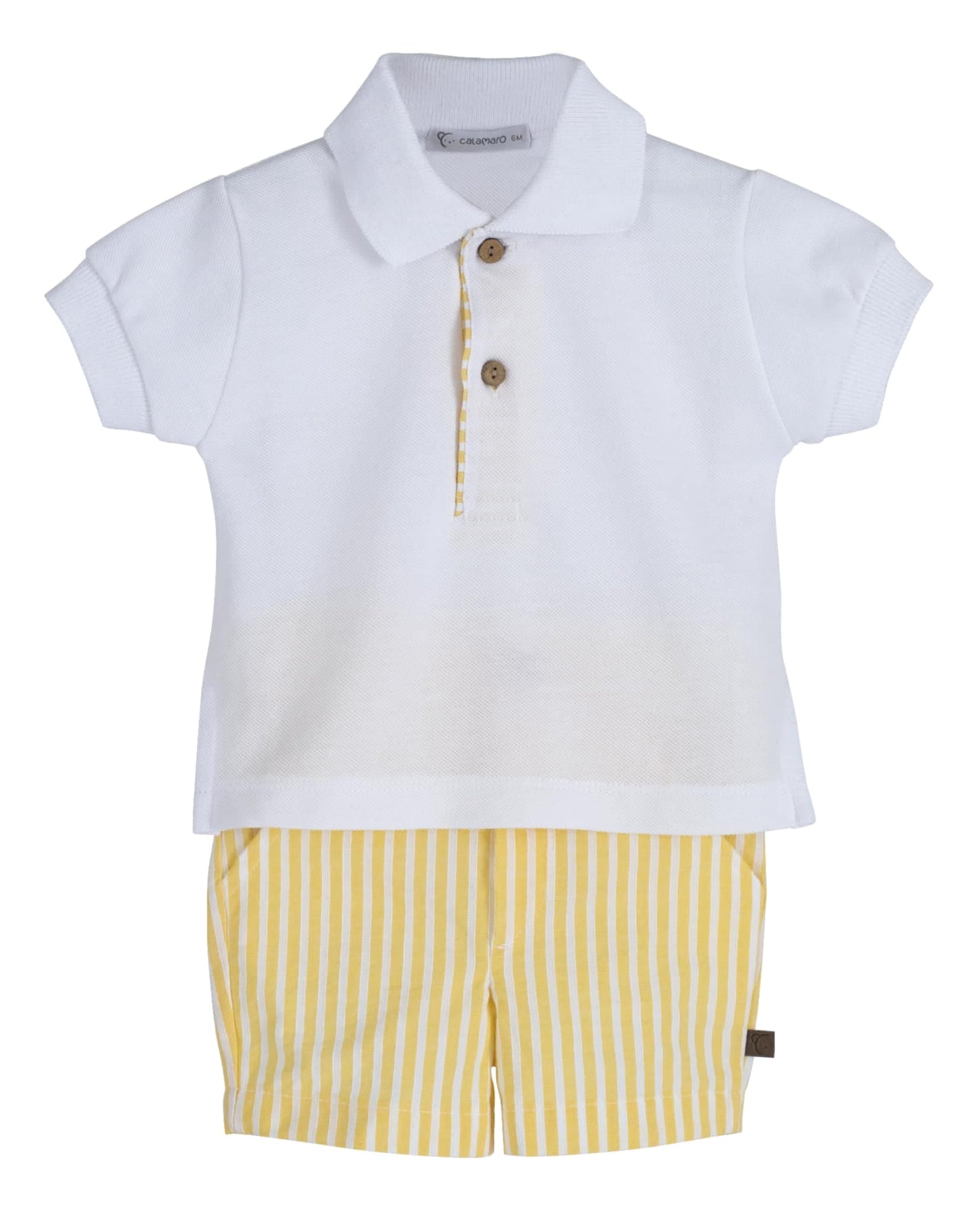 Calamaro Boys Lemon & White Striped Shorts & T-shirt Set - 11111