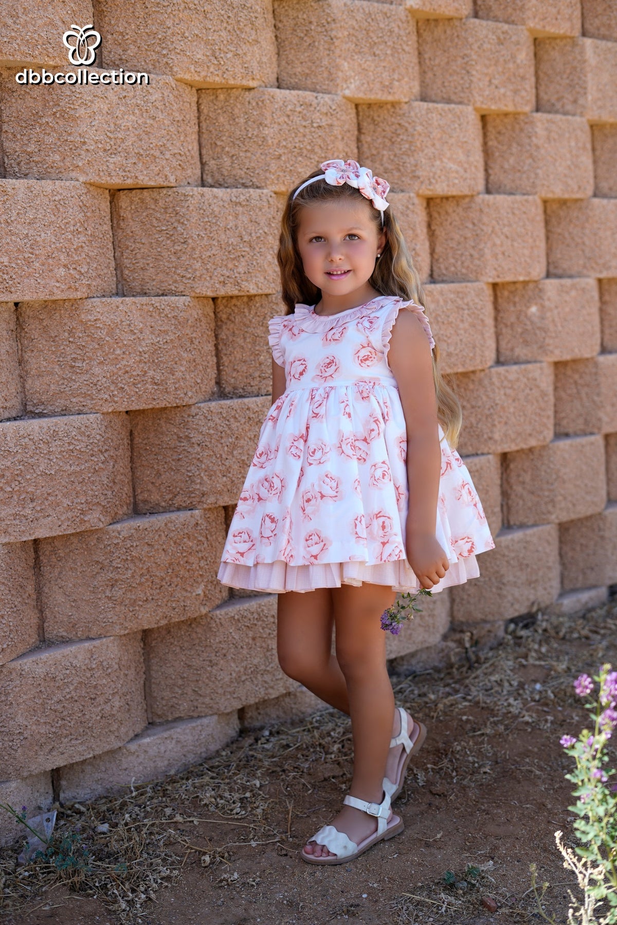 DBB Collection Girls Peach Floral Dress With Big Bow On The Back - 25002