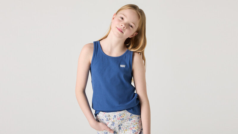 Levi's Girls Chest Logo Ribbed Tank Vest Top - Tru Navy - 3EK116-U69
