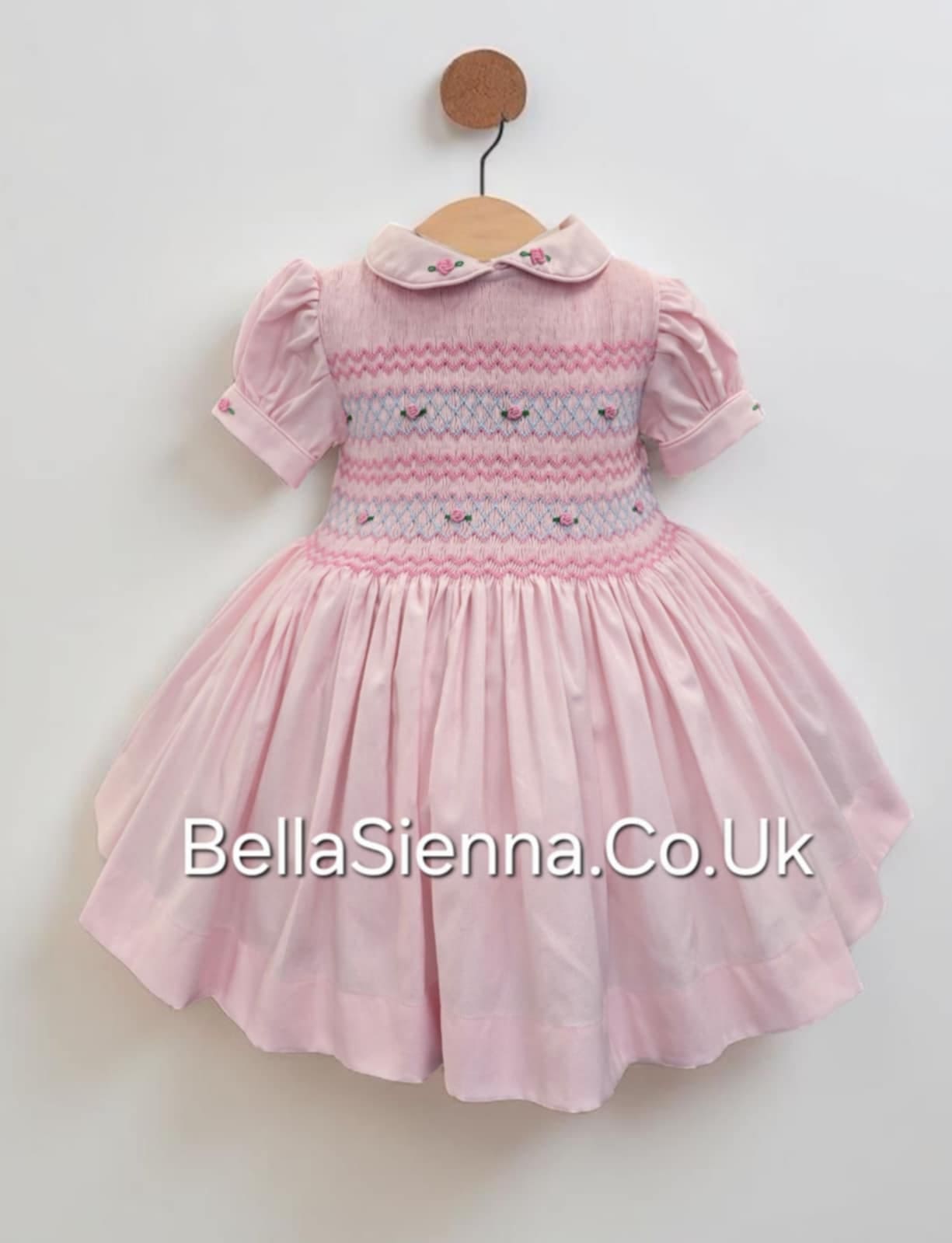 Luxury "Bella Sienna Exclusive" Pink Front & Back Smocked Dress With Built In Underskirt & Matching Hair Band Or Clip & Pants