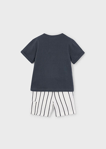 Mayoral Boys Grey Stripe Shorts & T-Shirt Set - 3603