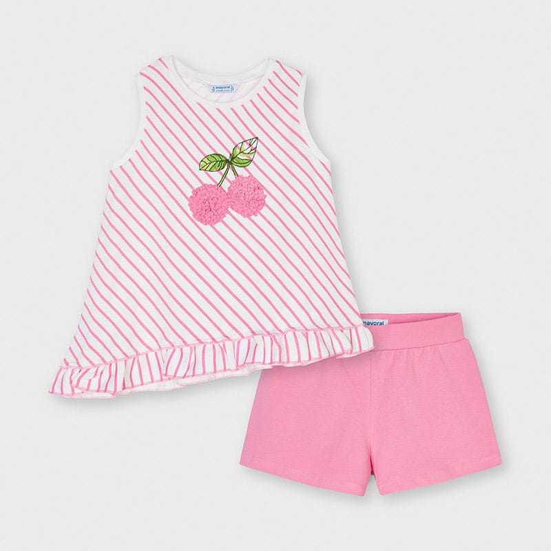 The Mayoral Girls 3212 Short Set is the perfect addition to your little girl's summer wardrobe. With a white and pink top and elasticated shorts, she will feel comfortable and stylish. The shorts provide practicality with an elasticated waistband for a secure fit.