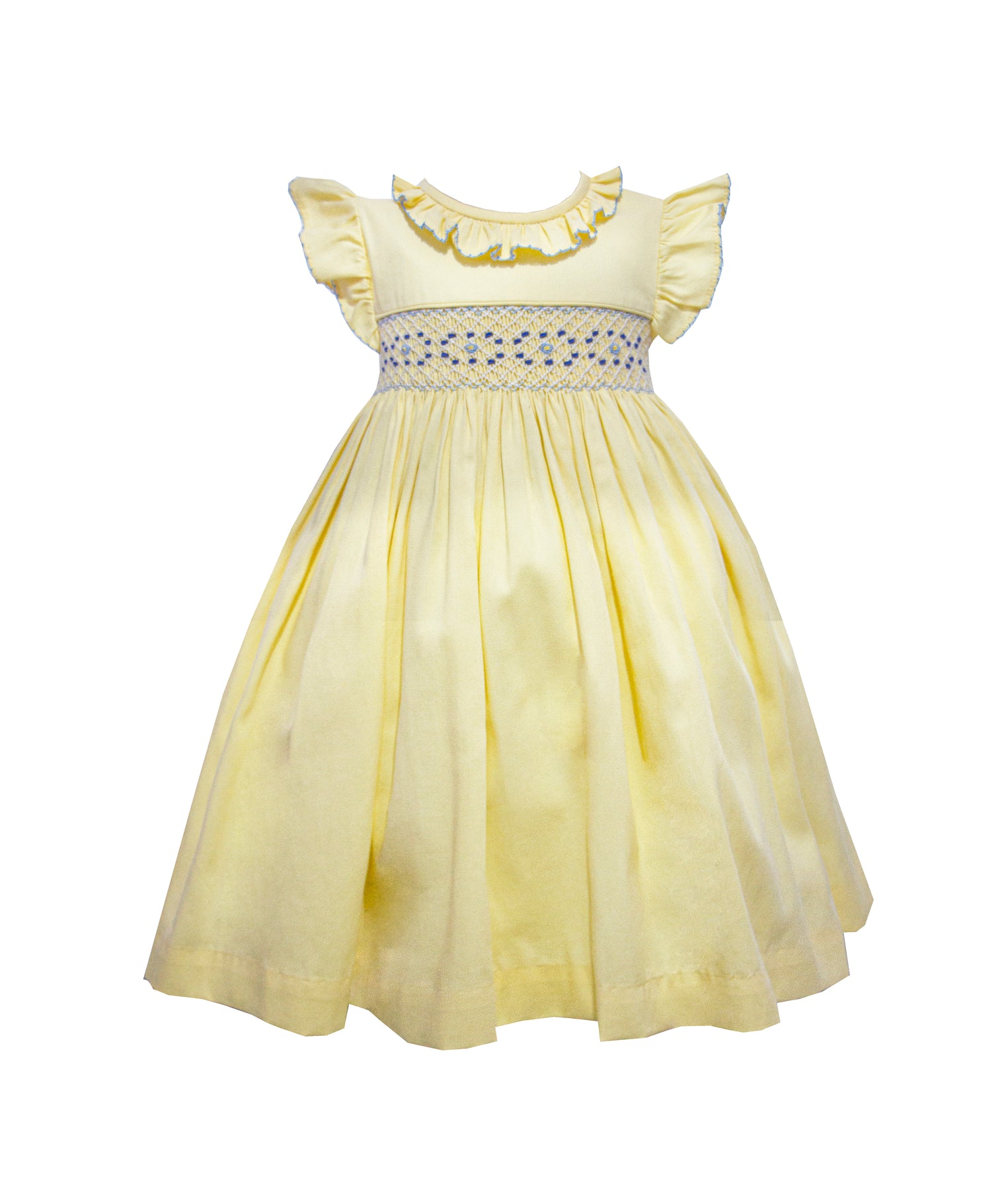 Pretty Originals Girls Lemon, Blue & Navy Hand Smocked Traditional Dress - BD02307
