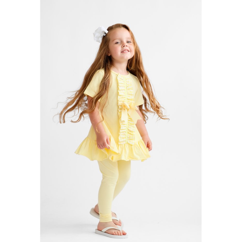 A girls 3 piece soft lemon tracksuit set. The Larosa set comes with leggings & also cute cycling shorts so you can make the most out of the warmer & chillier days.