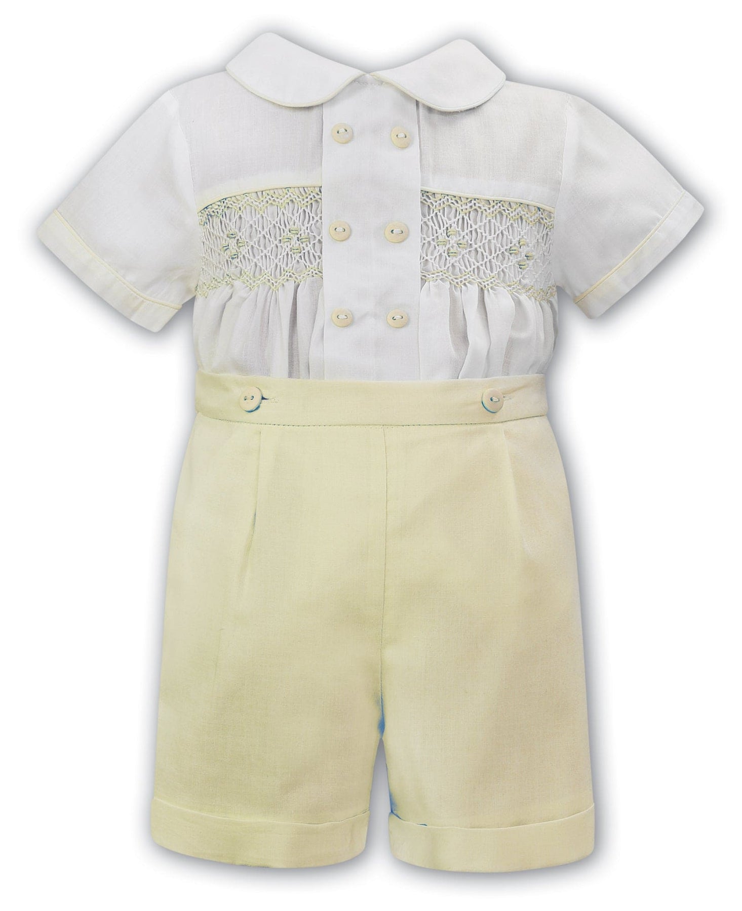 Sarah Louise White & Lemon Boys Hand Smocked Outfit - 013354