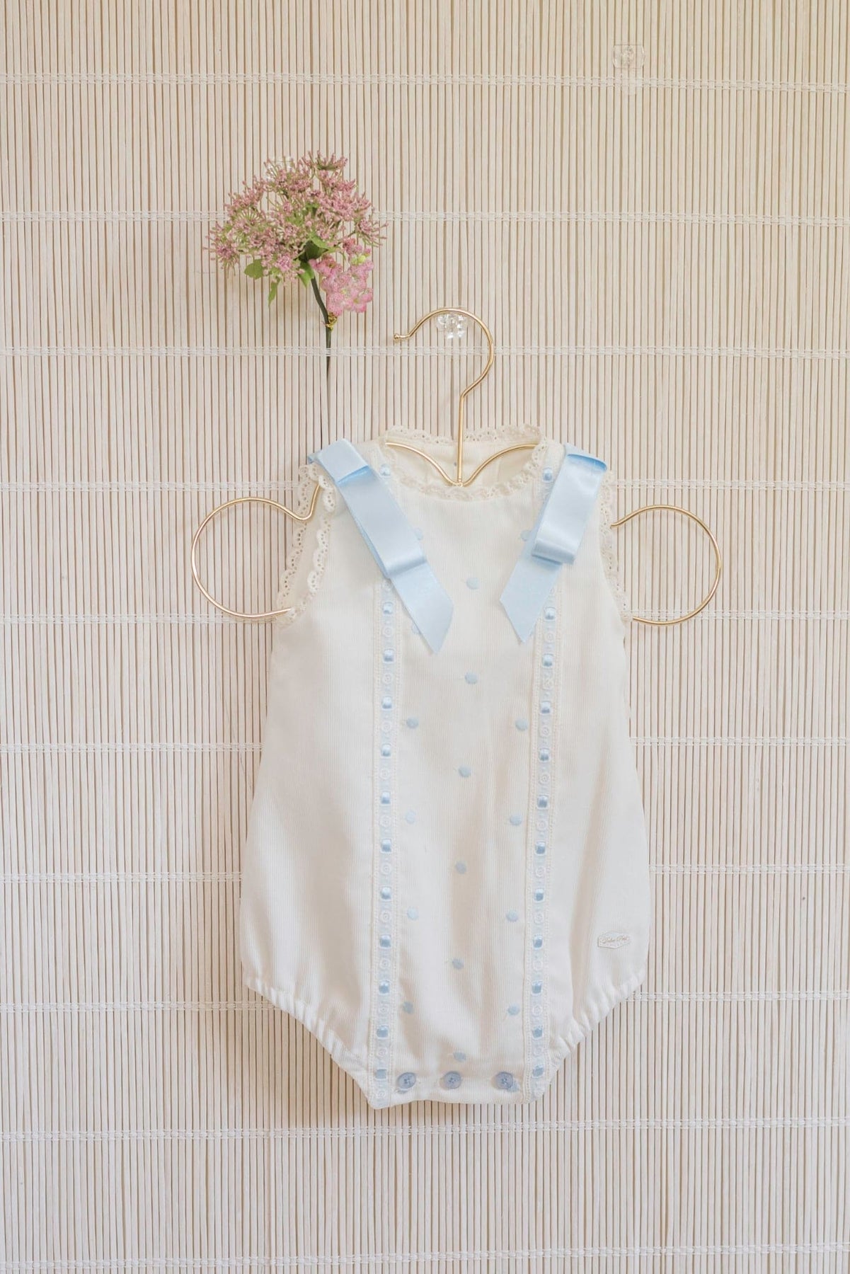 Dolce Petit Unisex Ivory & Blue Smocked Romper With Bows - 2013
