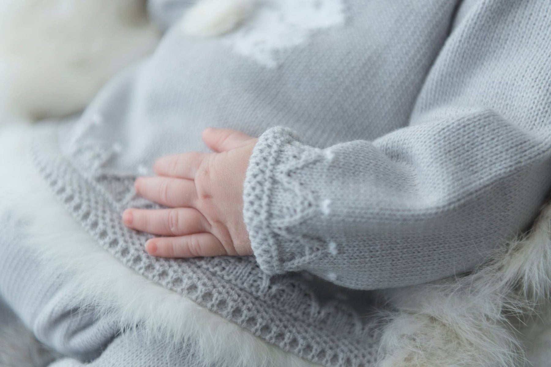 This two piece set from Mac Ilusion features a grey knitted jumper, with a cute bunny design on the front and a soft fur pom for the tail. The off white fur detail adds a touch of charm to the piece, while the button fastening at the back ensures easy dressing. The sweet grey and white pants have an elasticated waist and legs for maximum comfort. Perfect for keeping your little one cozy and stylish.