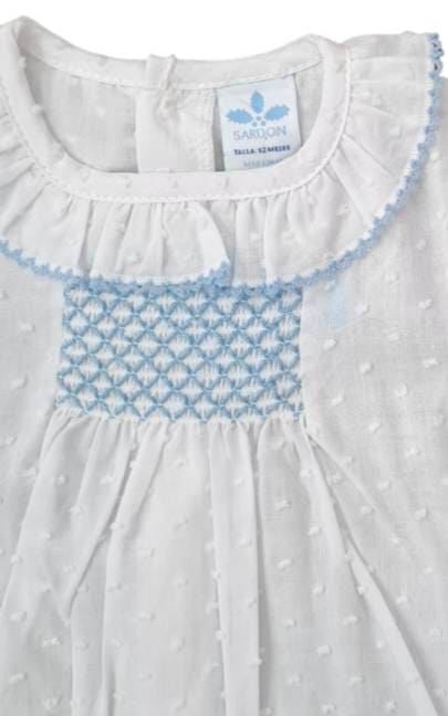 Sardon Smocked Frilly Collar Bodysuit with Blue Trim Unisex