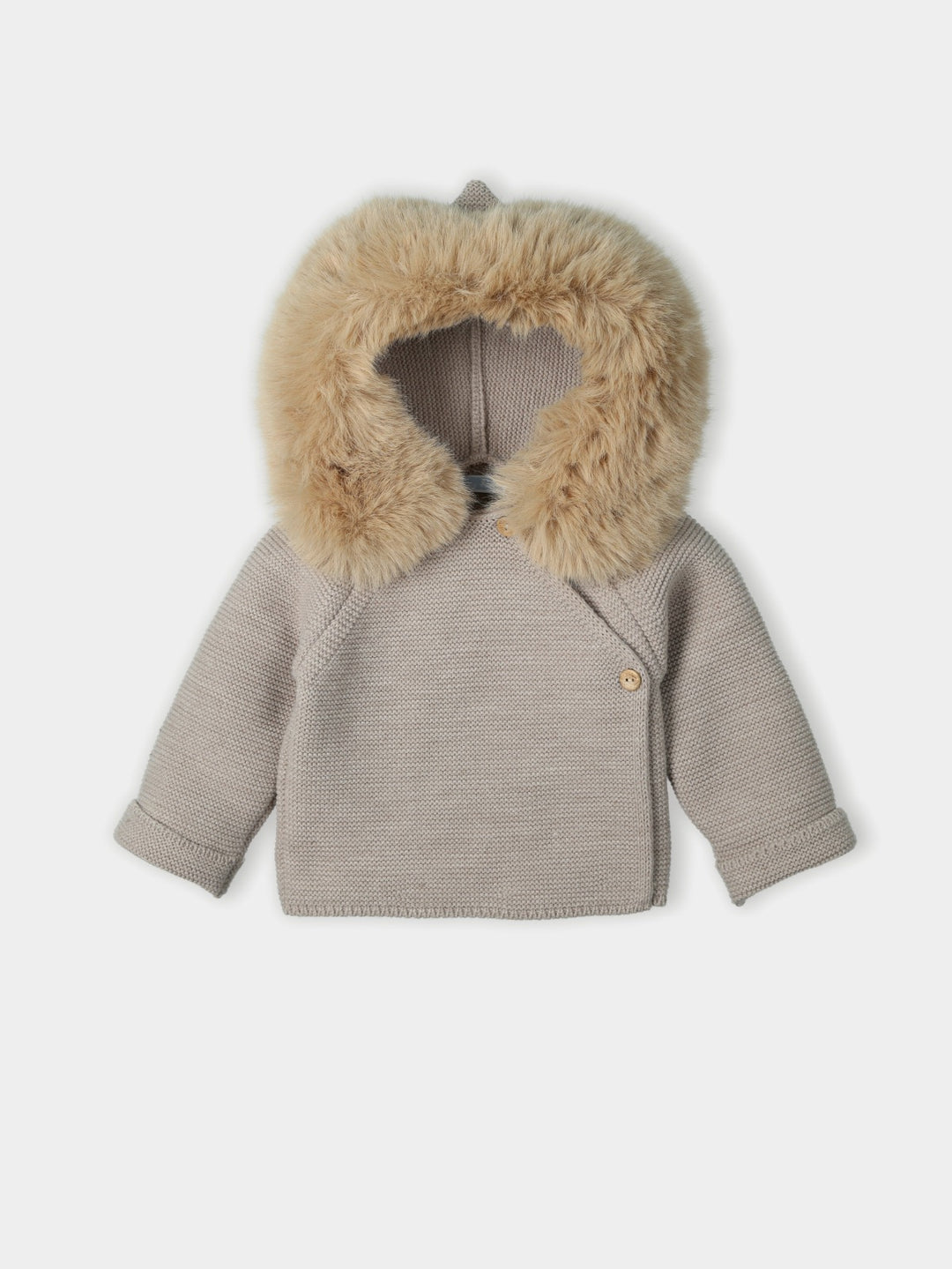 Mac Ilusion knitted coat with detachable faux fur trim 9094