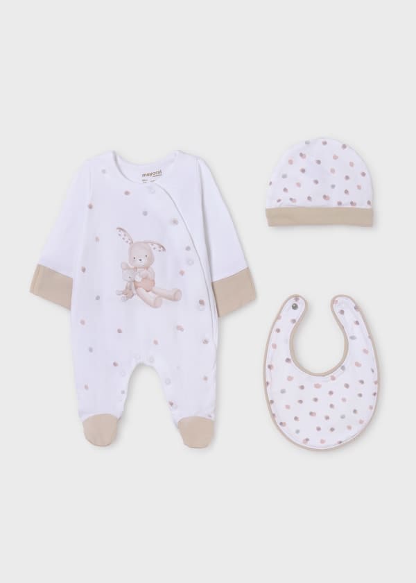 Mayoral Unisex Baby 3 Piece Gift Set Avena - Babygrow, Bib & Hat - 9448