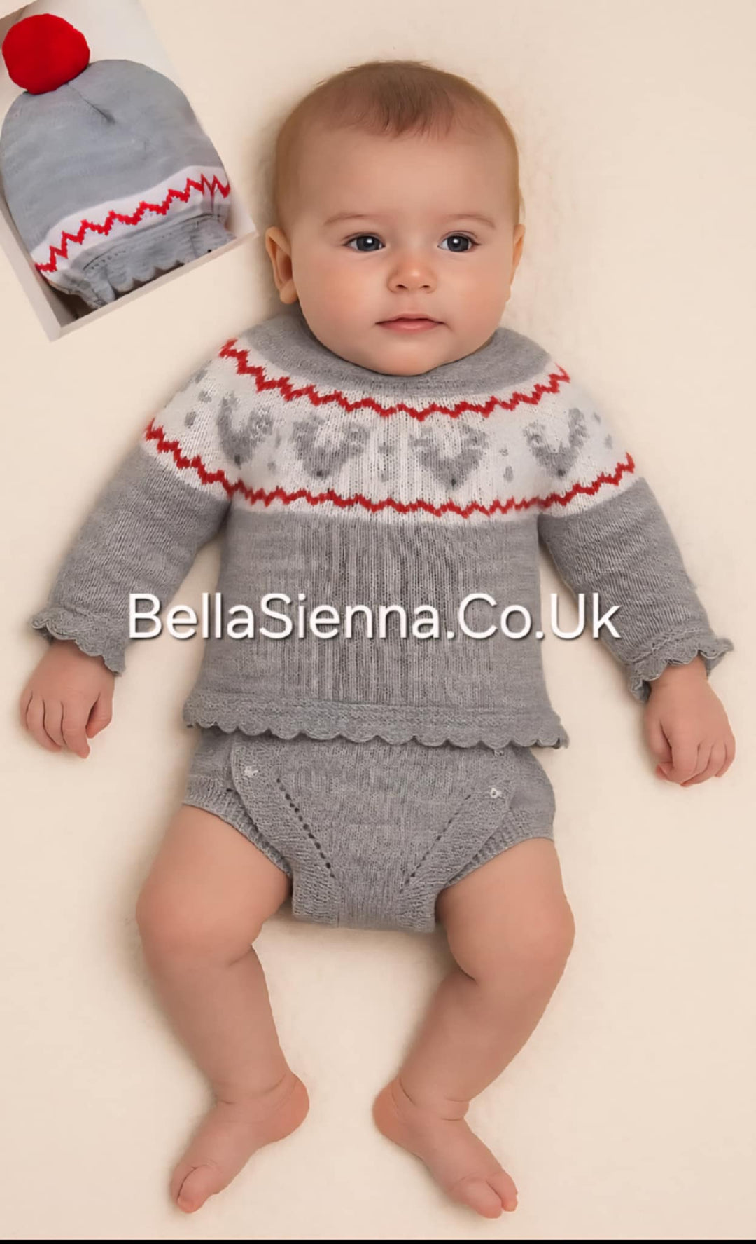 Martin Aranda Newborn Grey Knitted 3 Piece Teddy Bear Set - Winter - 004-10066