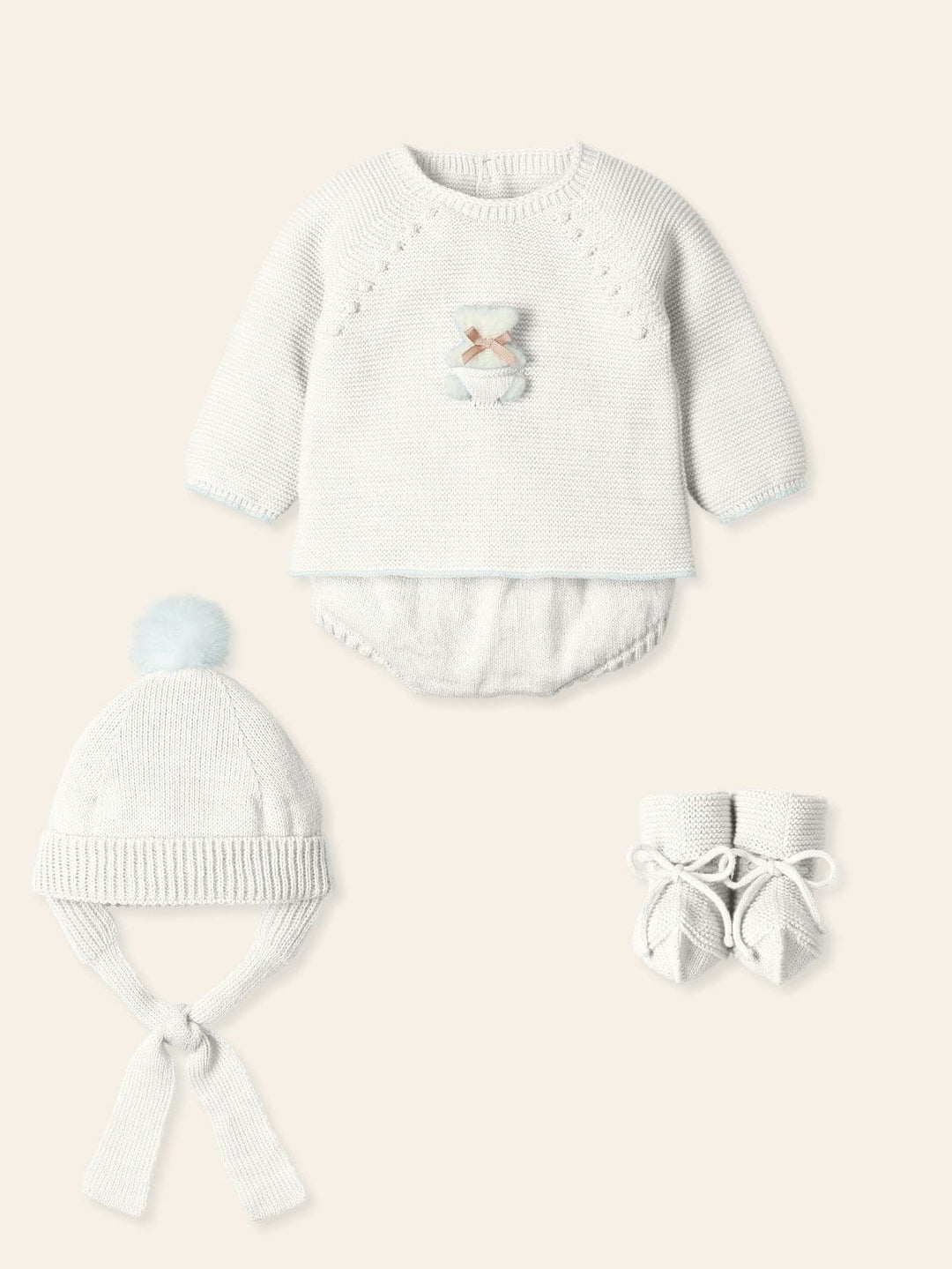 Mac ilusion Unisex Three Piece Blue Knitted Teddy Bear Set - 9405 - Crudo